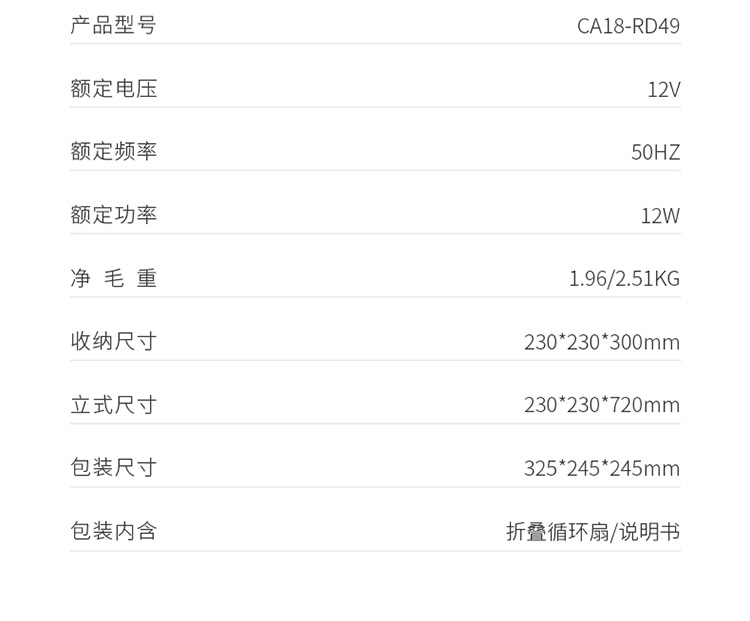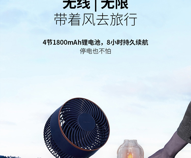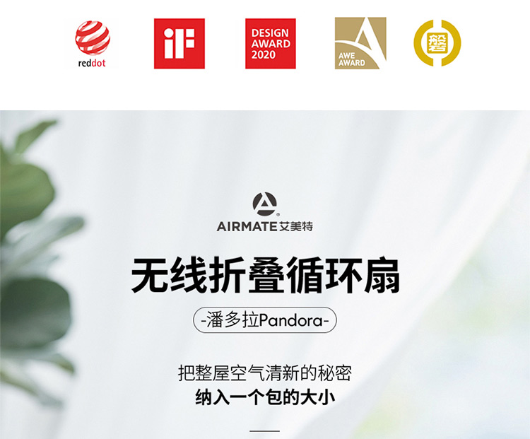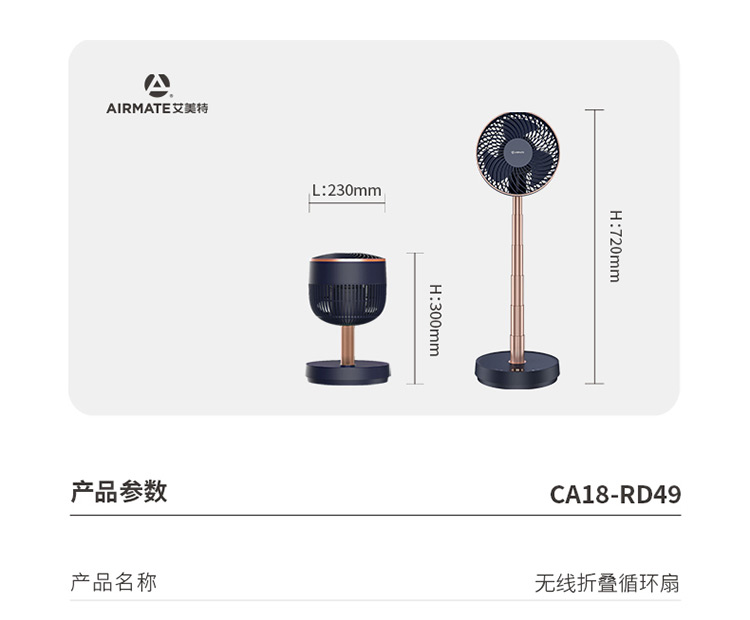 艾美特 ATENATE 潘多拉循环扇无线折叠充遥控定时落地扇大风量办公便携风扇免安装风扇 CA18-RD49
