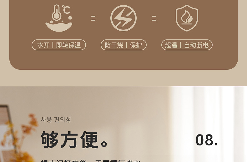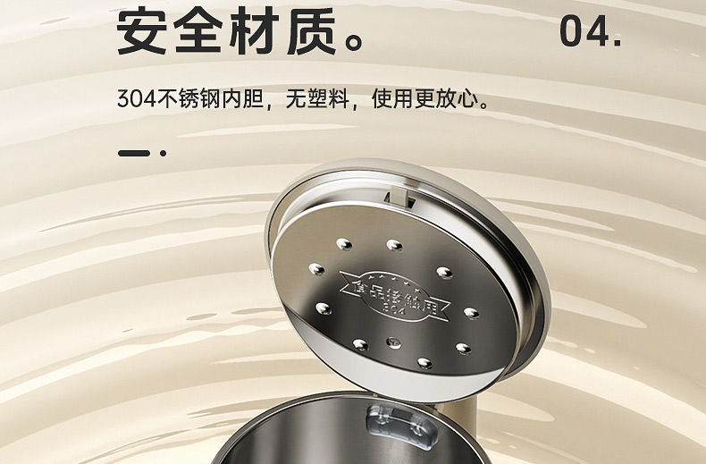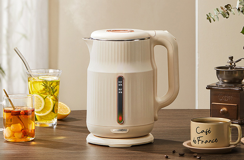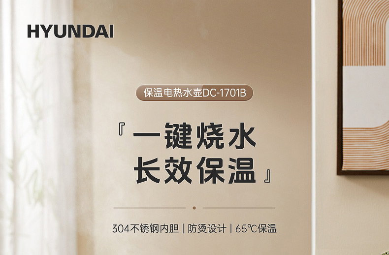 HYUNDAI韩国现代热水壶家用烧水壶双层防烫保温304不锈钢保温功能大容量恒温电热水壶1.7L蔷薇白【自动保温+304不锈钢内胆】DC-1701B