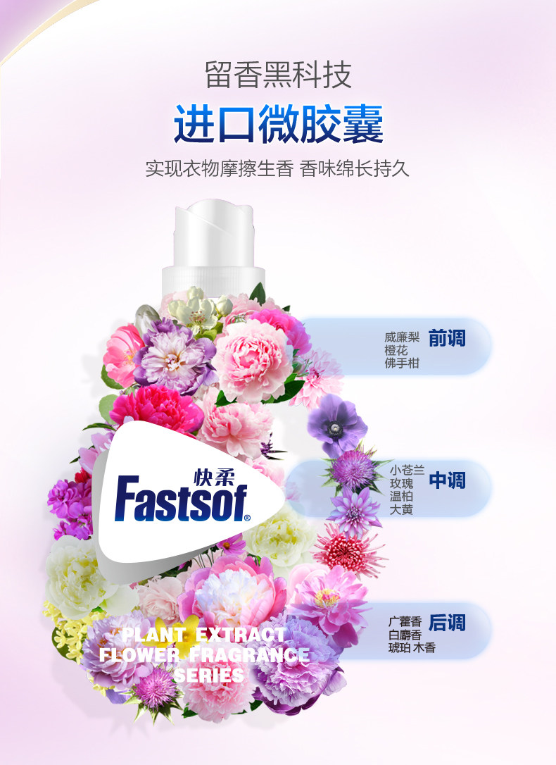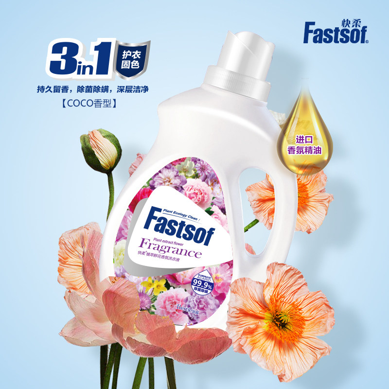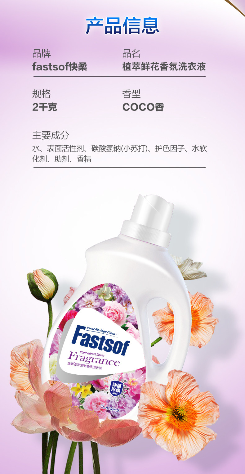 快柔植萃鲜花馨香洗衣液除菌除螨香氛洗衣液持久留香去污渍柔顺2KG*6瓶