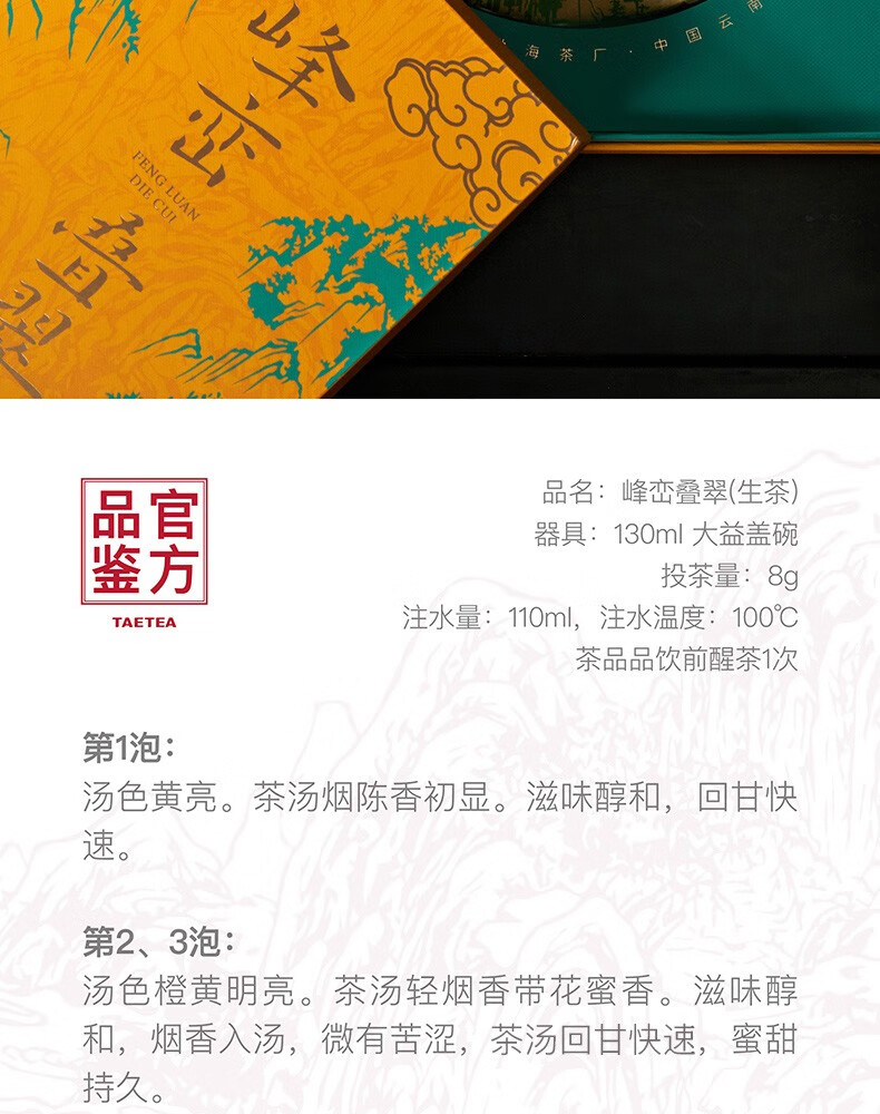 【普洱茶第一品牌】大益茶叶普洱茶礼盒自饮礼赠【峰峦叠翠生茶礼盒357g*1盒】