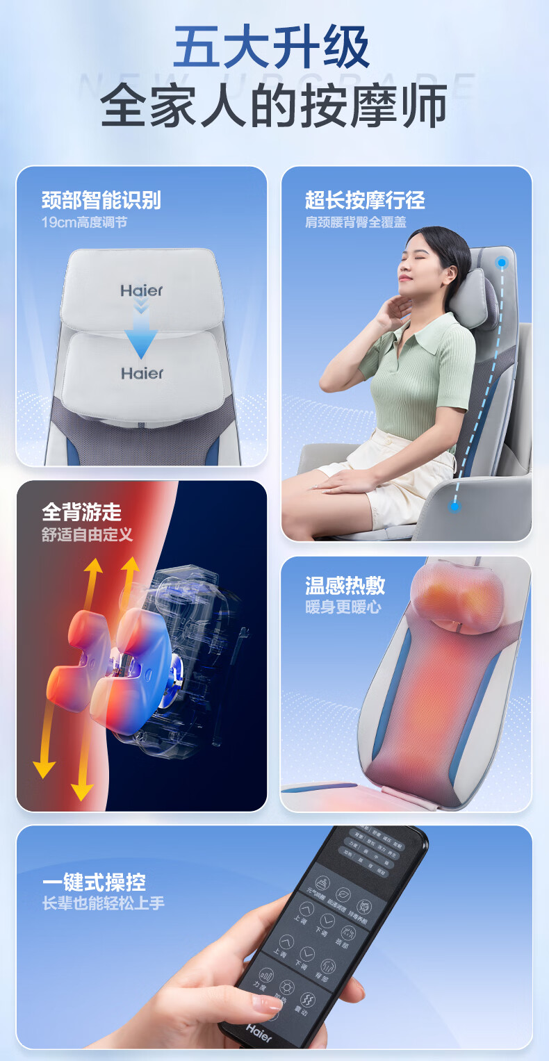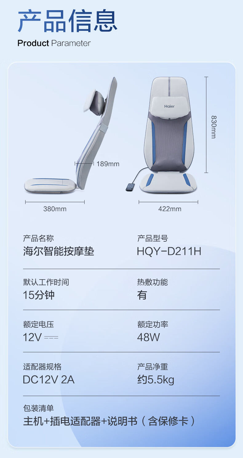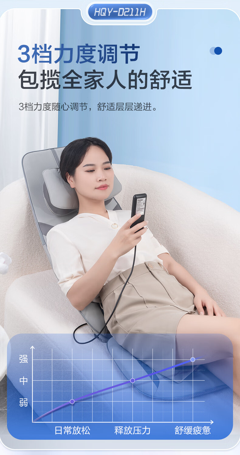 海尔 Haier 颈椎按摩器肩颈腰背部按摩仪全身按摩躺垫揉捏多功能家用按摩靠垫节日生日礼物送父母男女友实用 送老公老婆爸爸妈妈长辈男女士朋友HQY-D211H