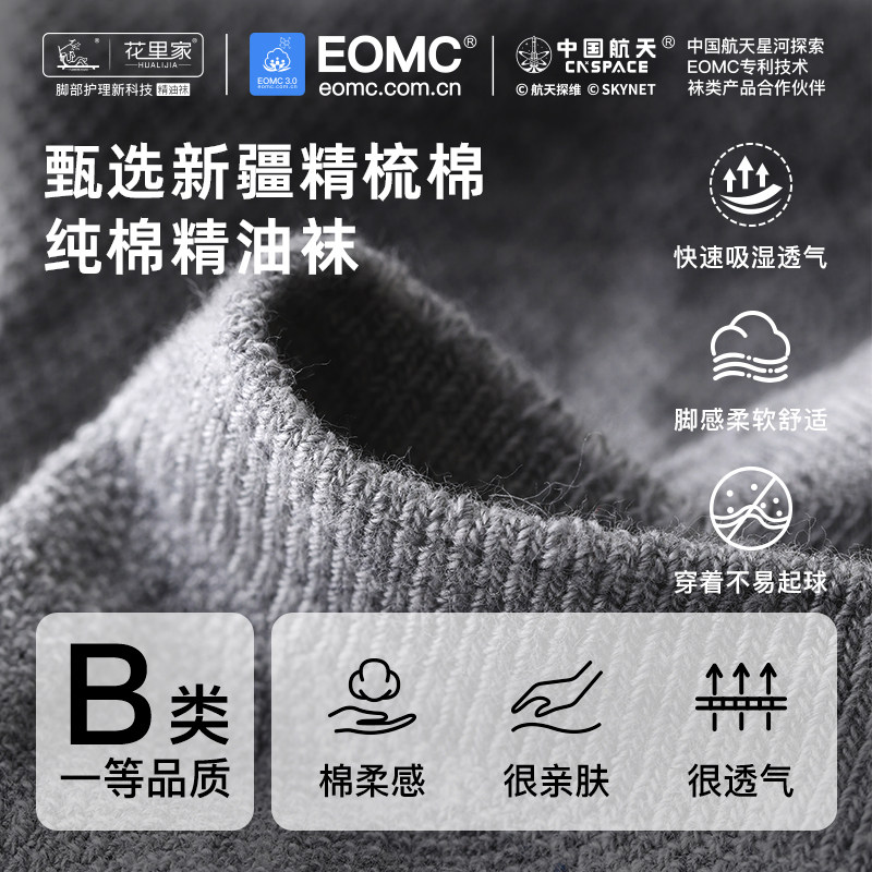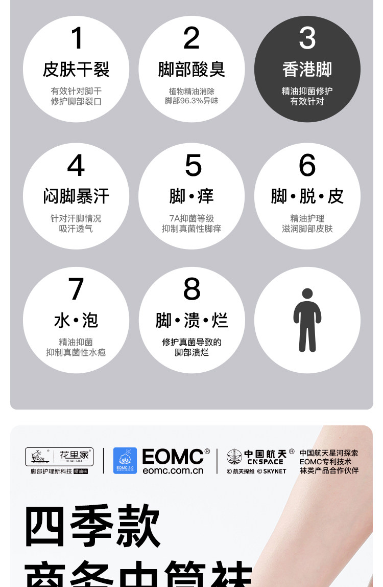 【5双】花里家7A精油吸汗抗菌防臭除臭男女袜四季纯棉中筒袜