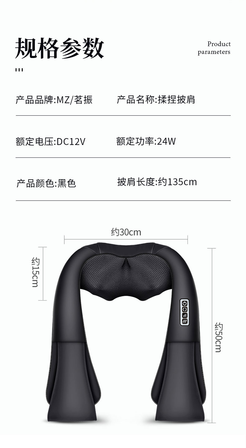 茗振揉捏披肩MZ-666R 黑色 多档力度可调节 休闲按摩好物 按摩器