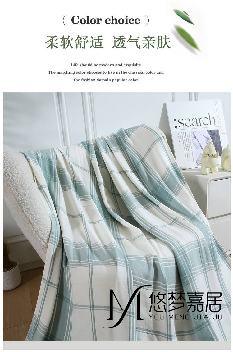 悠梦嘉居竹纤维色织冷感毯吸湿性透气性俱150*200/500g月下蓝
