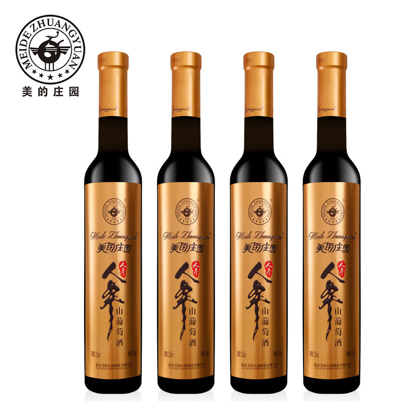 美的庄园甜型人参山葡萄酒长白山精选山葡萄滋补优质1*4瓶*375ml/盒