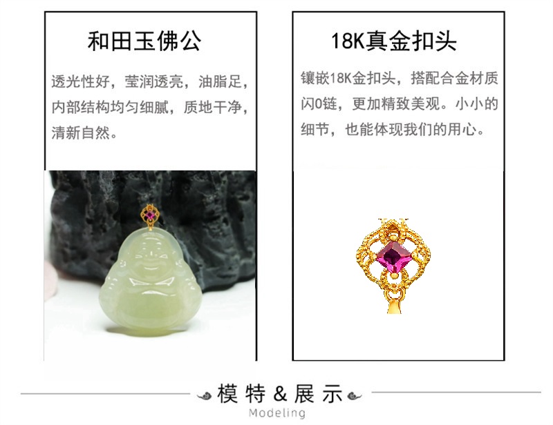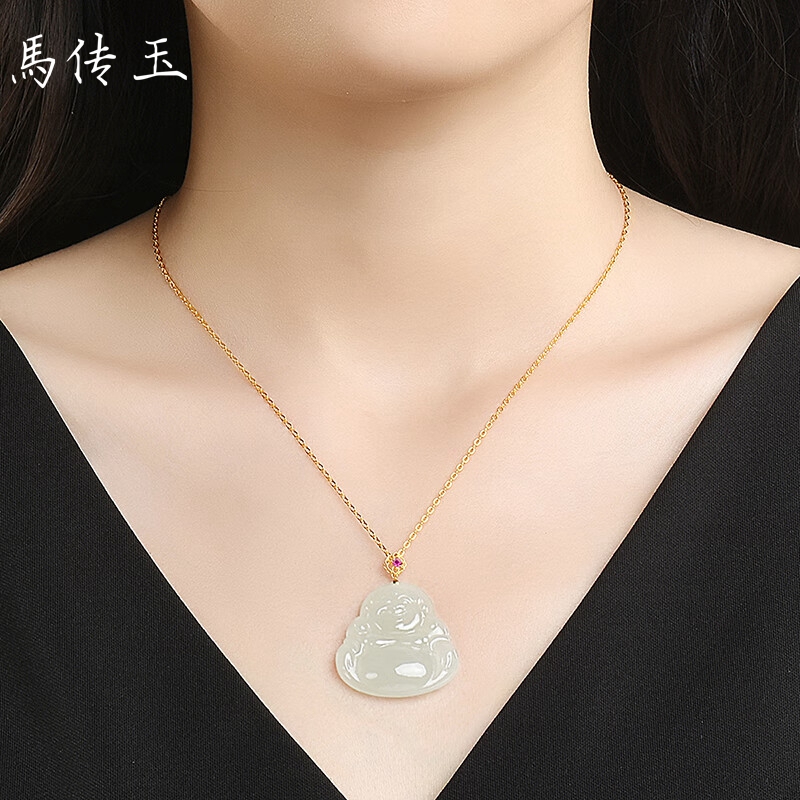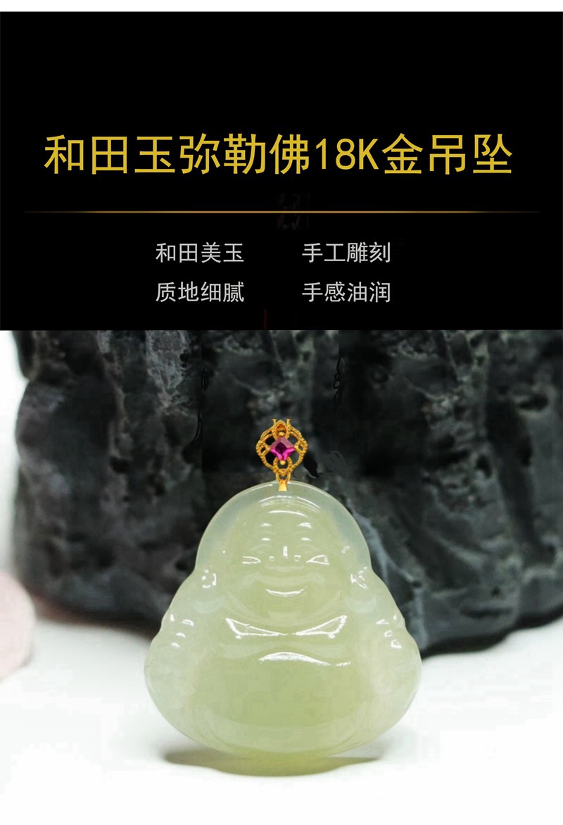 马传玉和田玉吊坠MCY014玉是弥勒佛形状镶嵌部分18K金镶材质链子材质925银镀金材质【每品一证】【新疆/西藏/青海不发货】