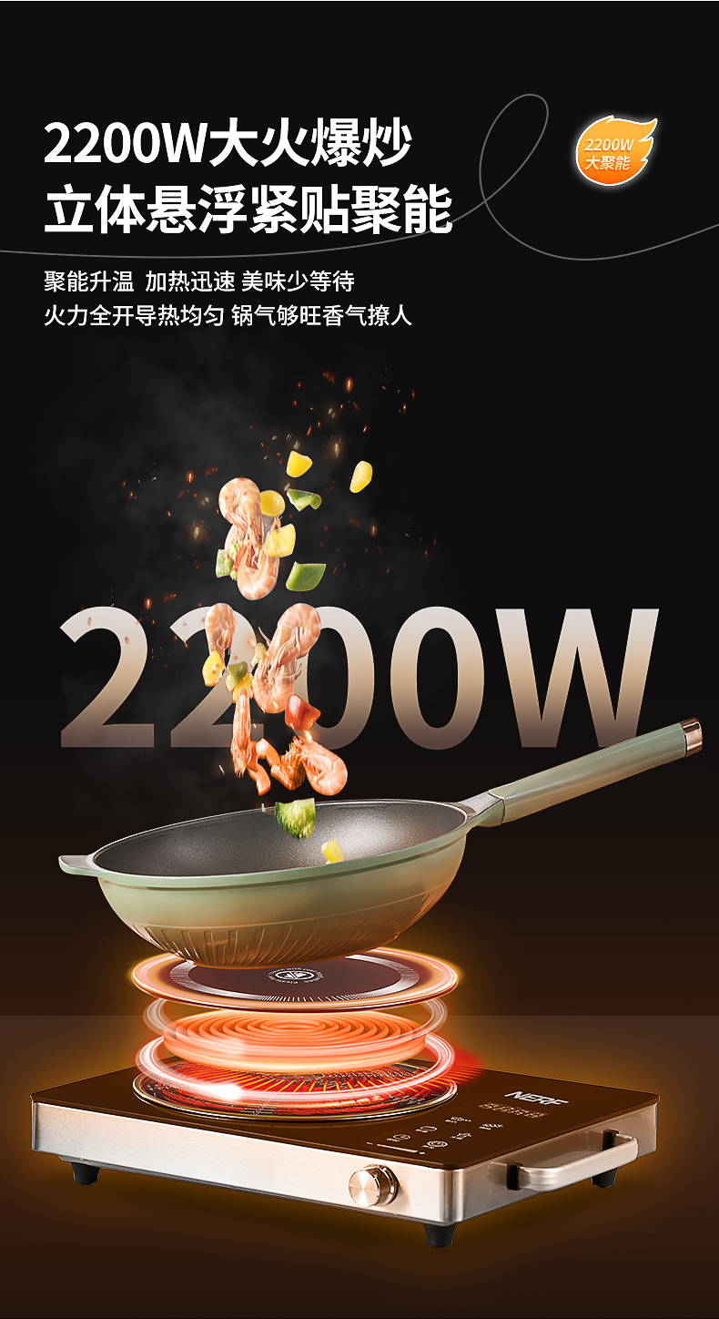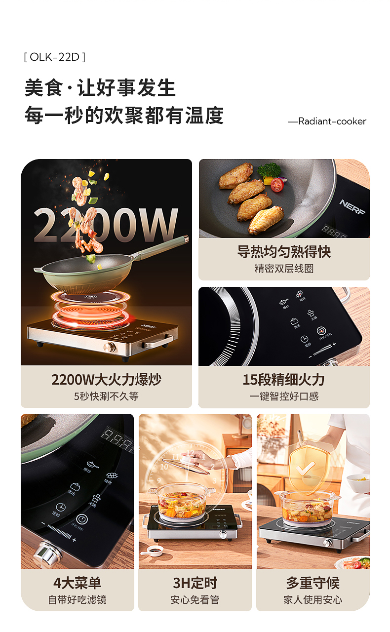 nerf 拉尔弗电陶炉 OLK-22D 家用2200W多功能一体可定时1-180分钟 防水耐磨 智能触碰微晶面板