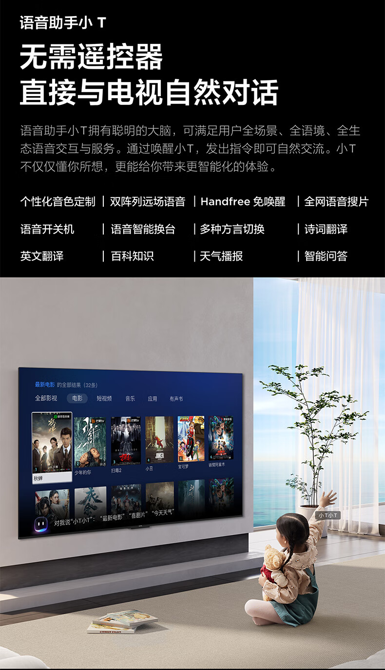 TCL集团荣誉出品乐华/ROWA 2024新品 75英寸智慧AI电视 A++4K超显屏 HDR防蓝光 智能语音 双频WIFI智能电视75U33 送货上门