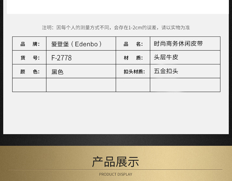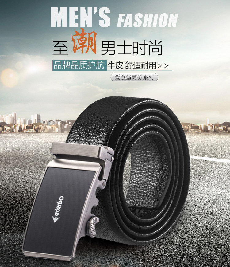 爱登堡(Edenbo) 时尚休闲皮带自动扣商务裤带牛皮双卡槽防滑F-2778