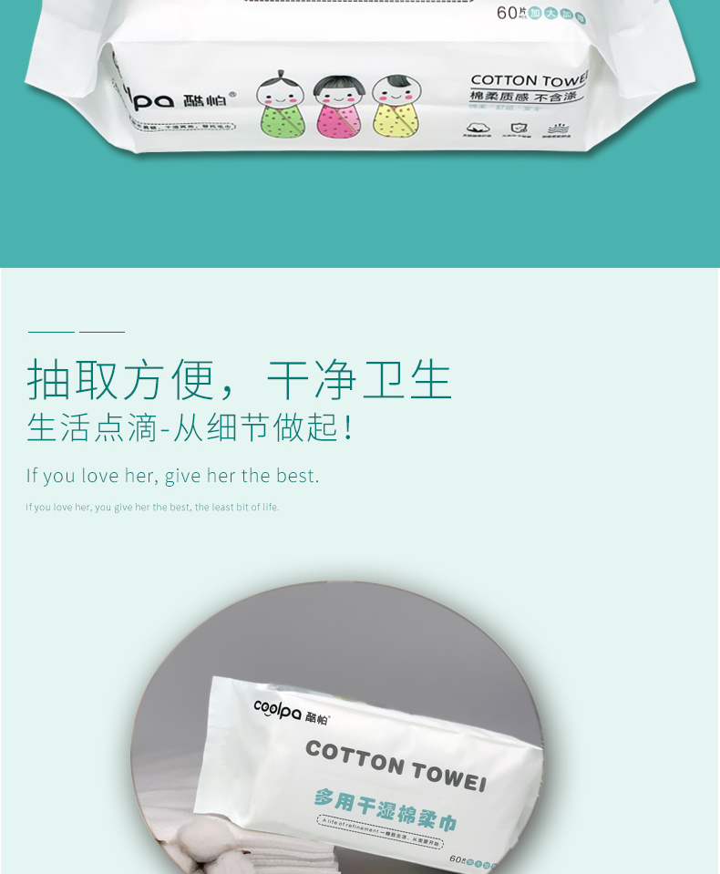 【4包】酷帕洗脸巾加大加厚洗面擦脸洁面纸卸妆棉抽取式珍珠纹60抽*4包200*200mm