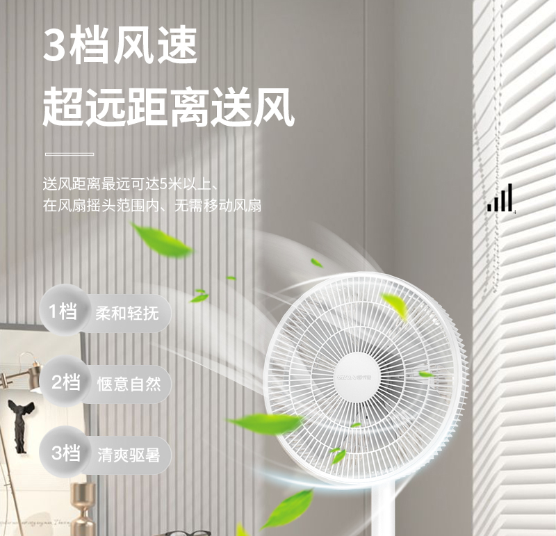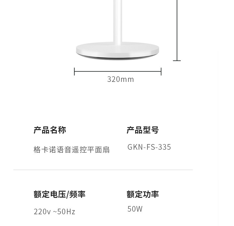 格卡诺风扇语音遥控平面扇家用静音大风力落地扇(陶瓷白)GKN-FS-335