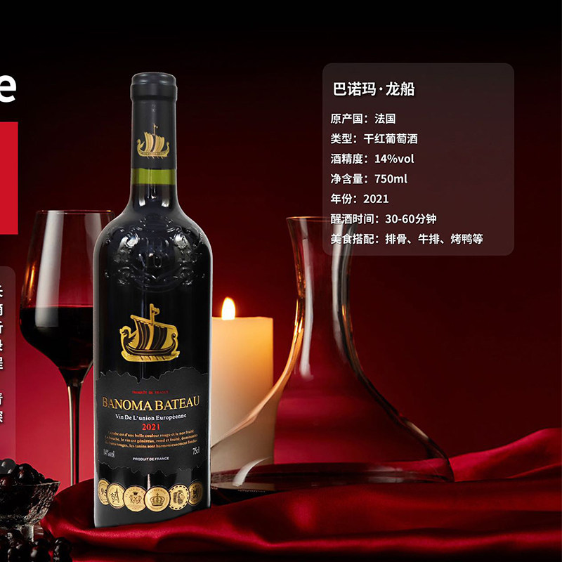 巴诺玛庄园法国进口巴诺玛龙船精选干红葡萄酒日常聚餐6瓶*750ml