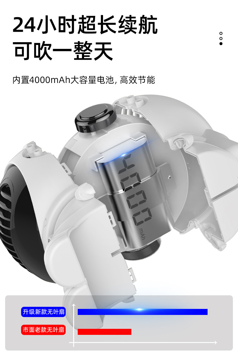 包邮-岩色无叶便捷式挂脖风扇办公室小型风扇随身小型电风扇大风力户外无叶风扇三档可调+环绕出风350
