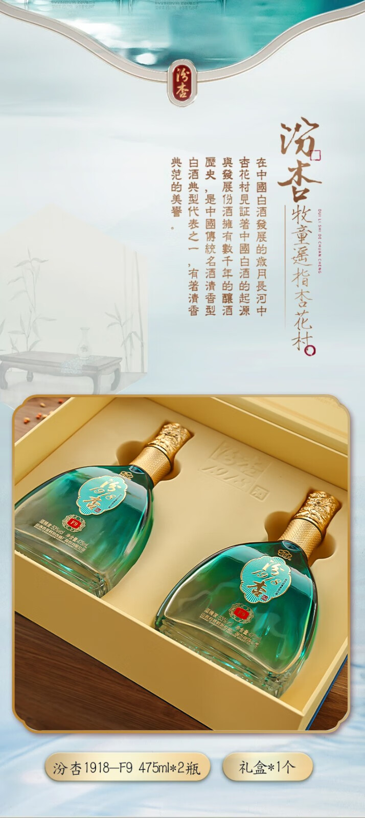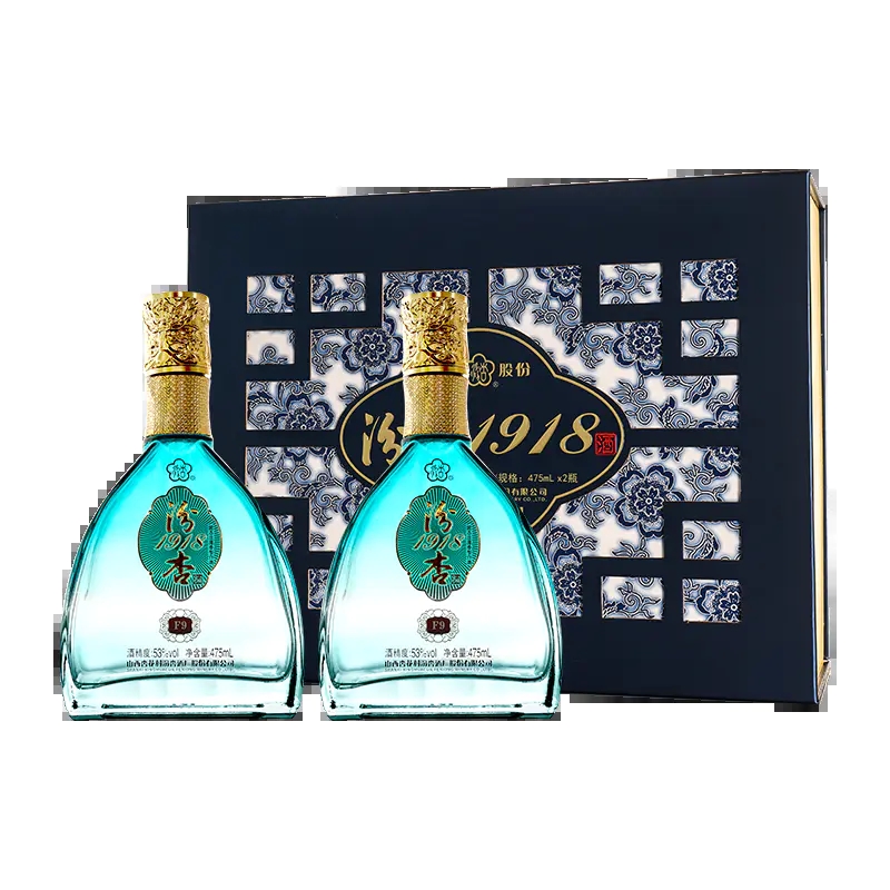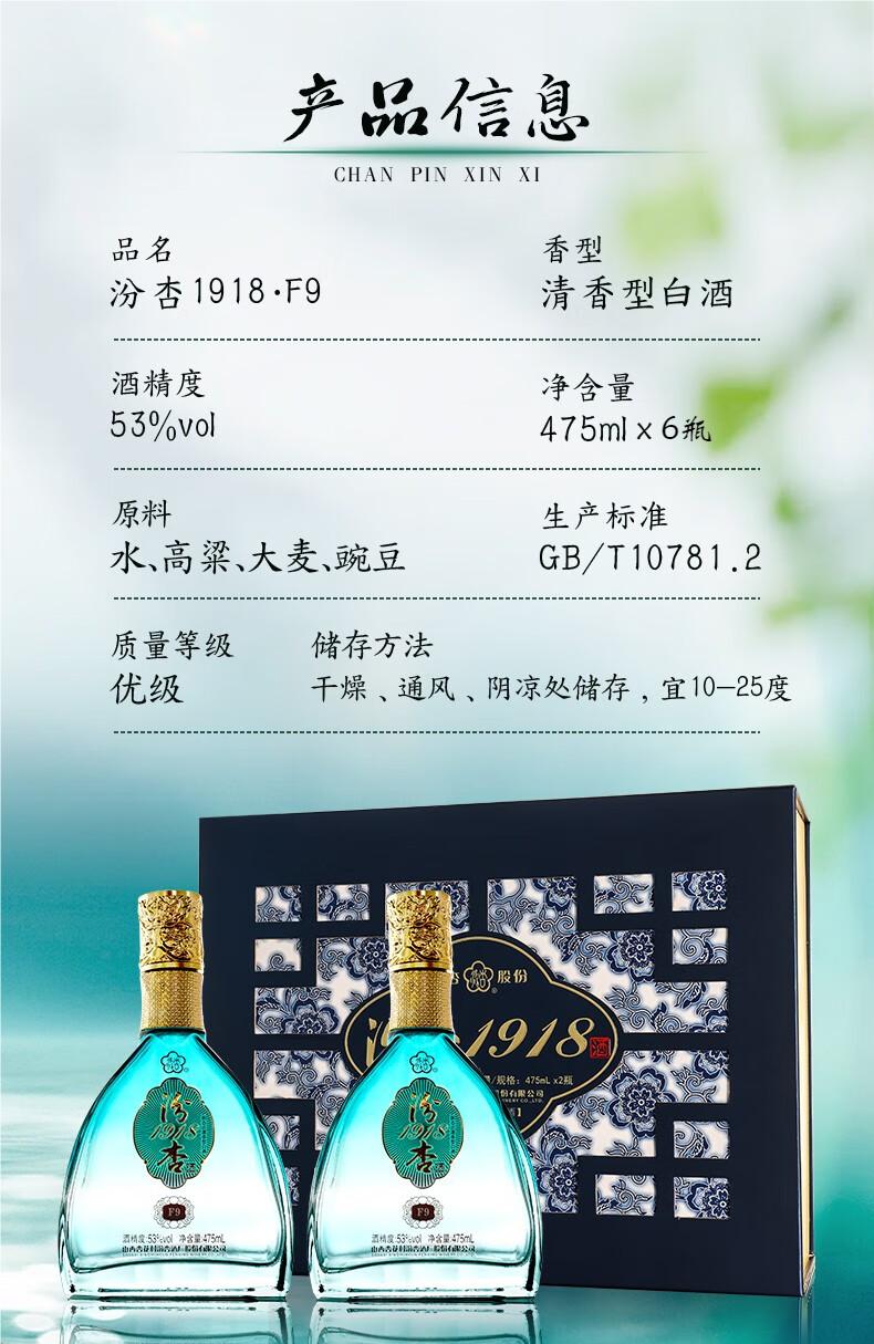 【整箱装6瓶】汾杏1918 F9 清53度香型白酒475ml*6瓶 礼盒装
