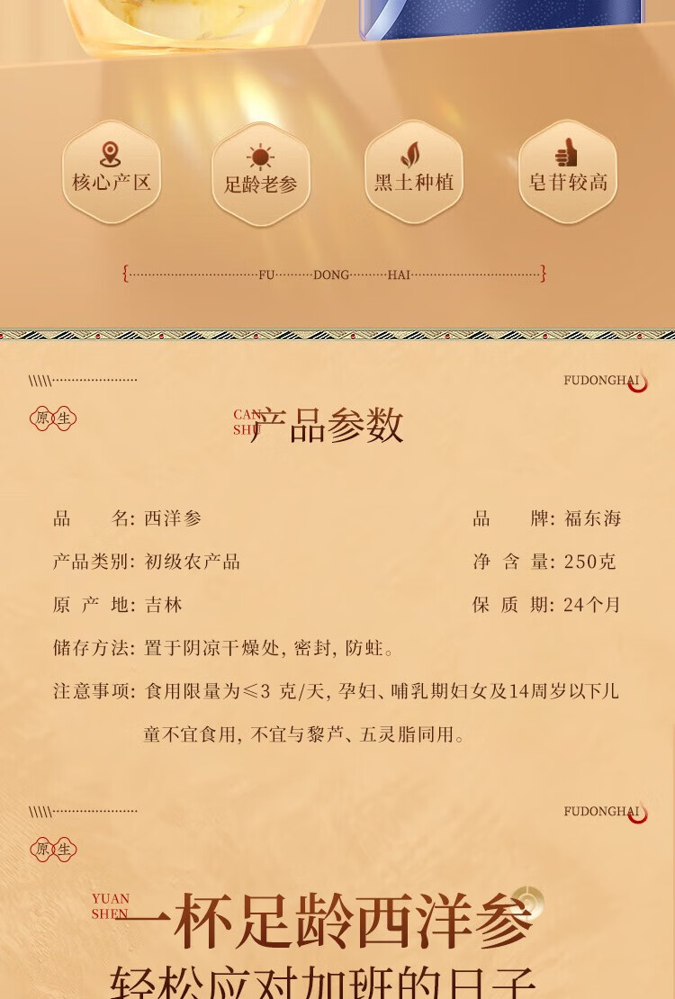 【福东海】西洋参250克(0.8-1.0cm)/瓶