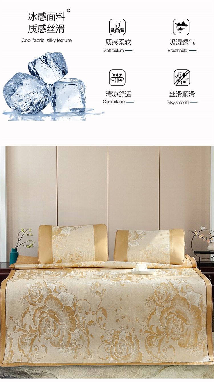 彩羊Fazeya恒源祥集团彩羊家纺冰丝凉席三件套黄色