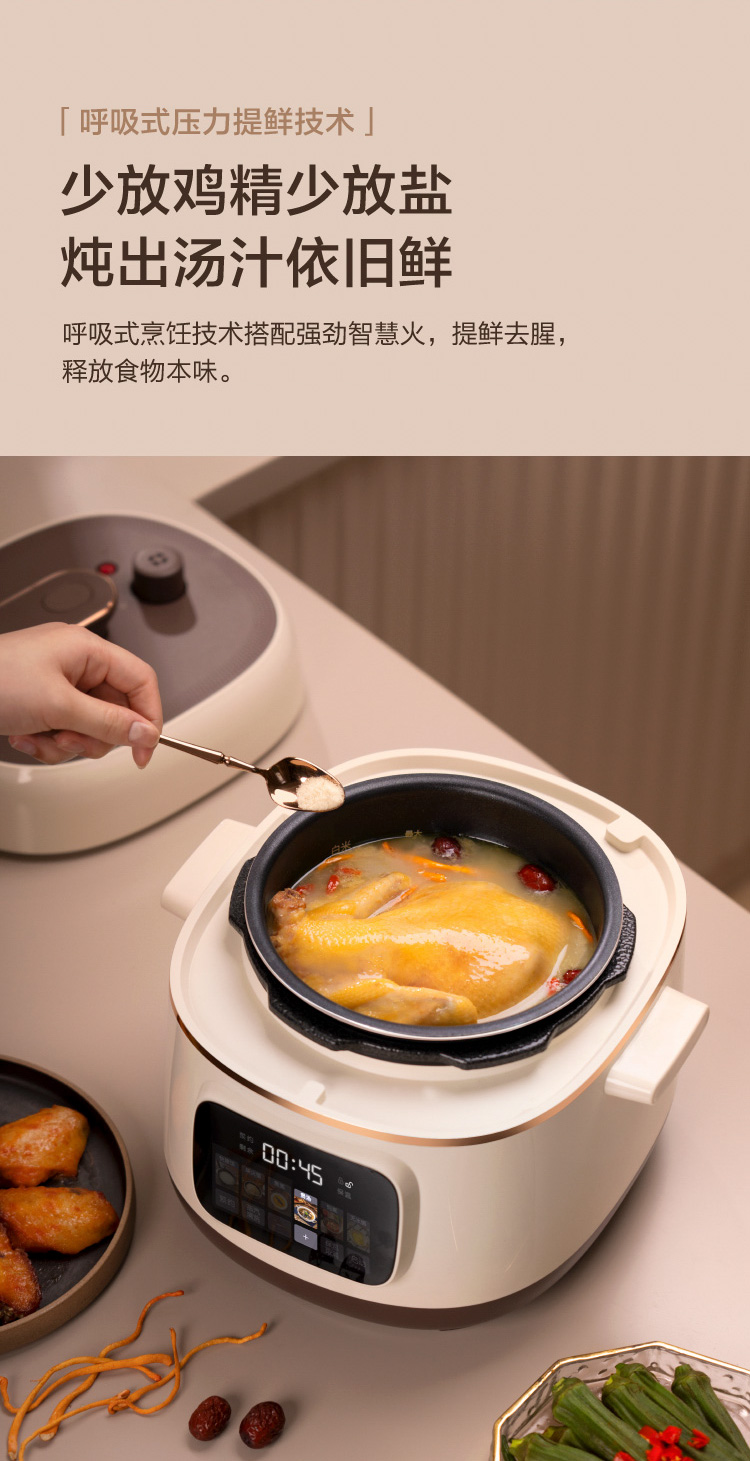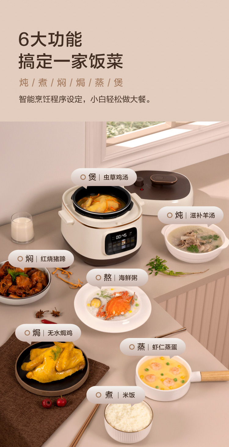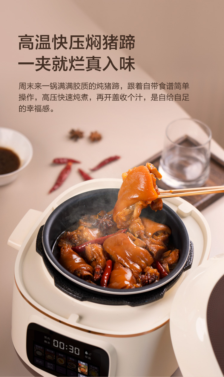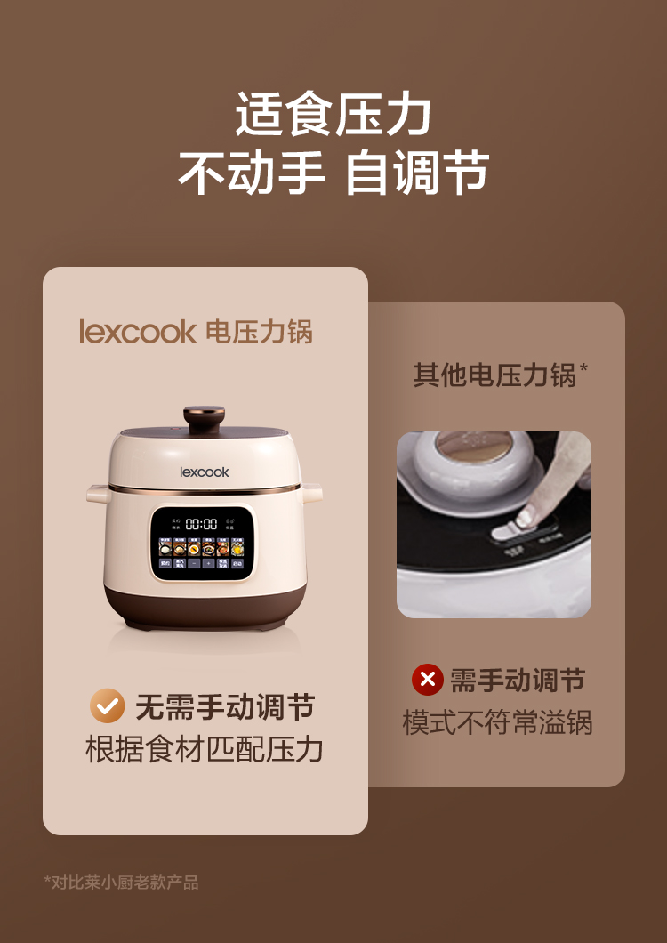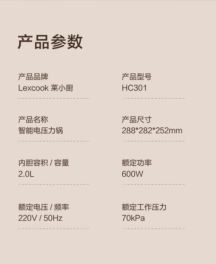 莱克 莱小厨 Lexcook 电压力锅2升电高压锅2-3人多功能电饭煲智能预约煮粥自动排气压力锅 奶白色 HC301
