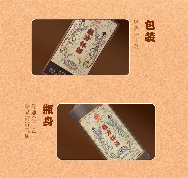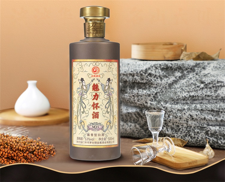 【中秋送红酒】魅力怀酒M15金酱酒业出品贵州茅台镇金酱酒业工艺优级53度酱香型白酒500ml/瓶(下单整箱6瓶送一瓶奔麦斯葡萄酒,活动时间:2024年8月30日--2024年9月17)