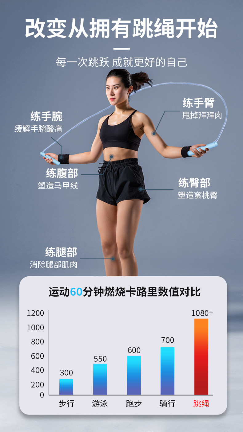匹克计数跳绳减肥专用健身竞速可调节钢丝绳学生成人标准长绳款蓝色YW44102
