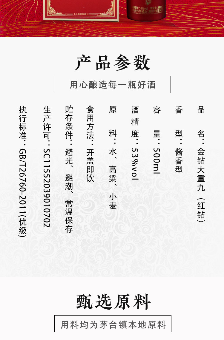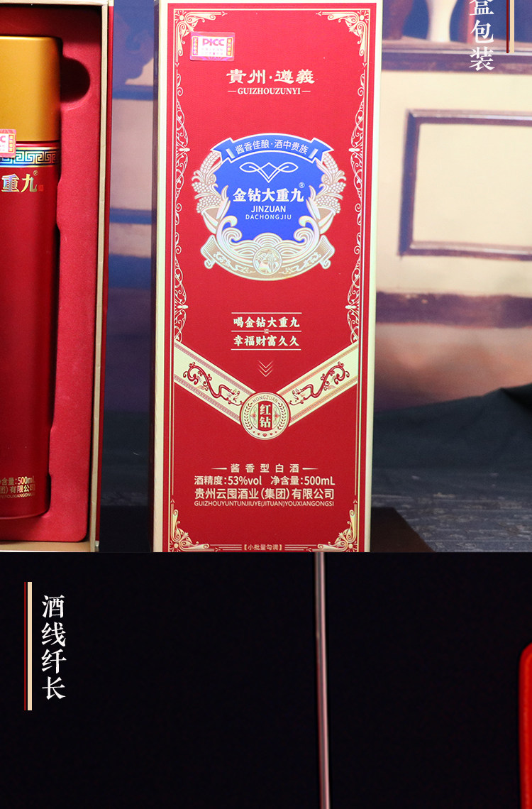 金钻大重九500ml*6瓶 贵州茅台镇红钻大重酒53度白酒酱香型酒水粮食酿造老酒