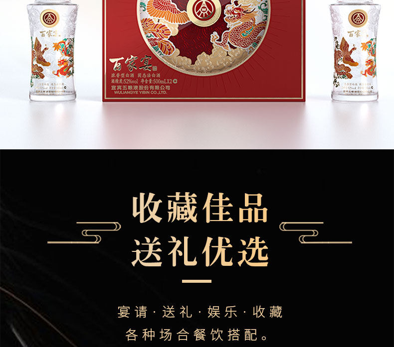 五粮液百家宴龙凤呈祥500ml*2瓶 浓香型52度白酒四川宜宾粮食酒礼盒装送礼宴请聚会