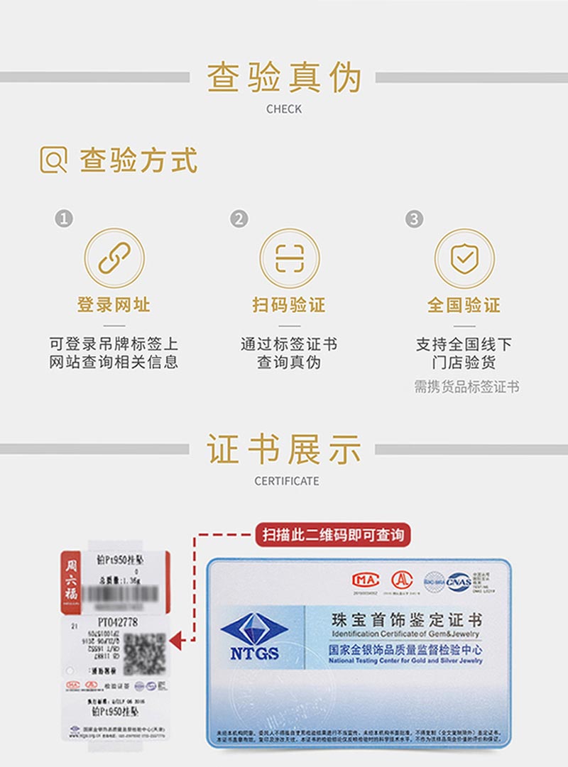 【每证一品】周六福S925合成立方氧化锆小方糖链坠ZLFJ061962