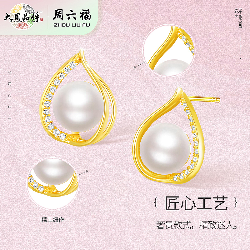 【每证一品】周六福水滴S925淡水珍珠耳饰ZLFX091945