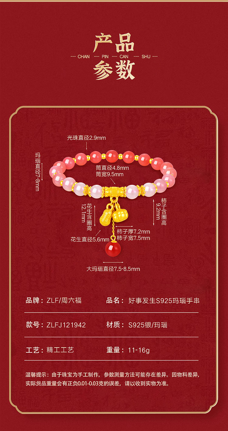 周六福好事发生S925玛瑙手串ZLFJ121942