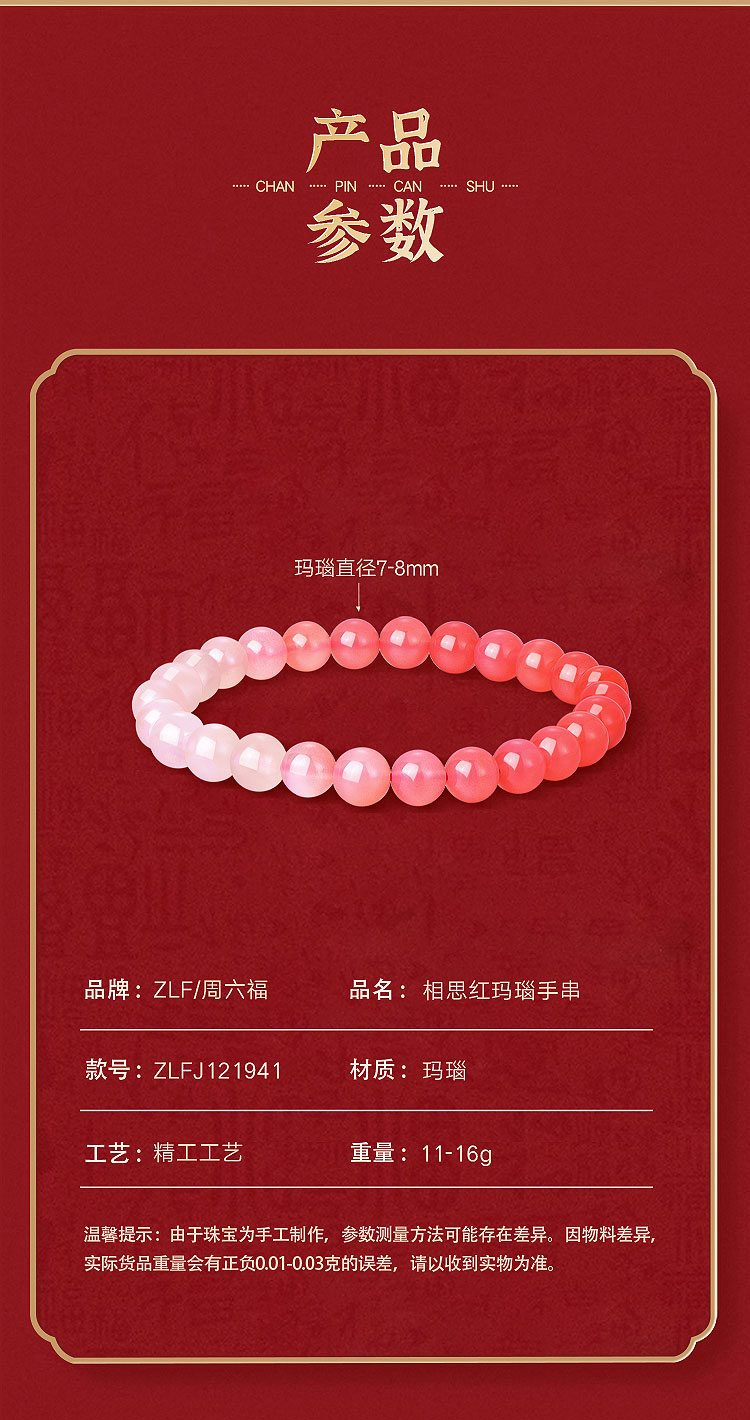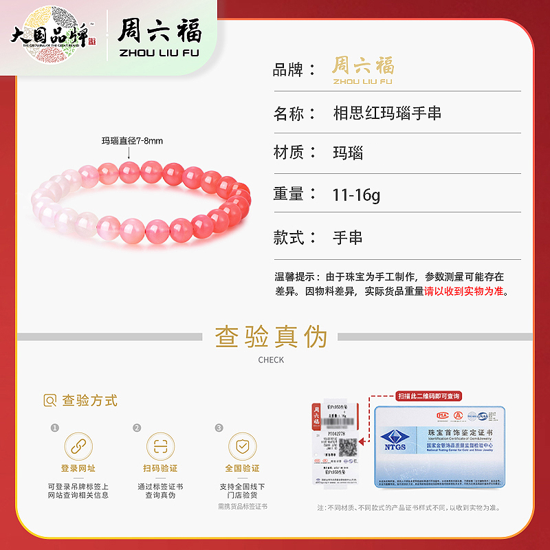 【每证一品】周六福银925和田玉手串ZLFY122272 节日礼物生日礼物 送女友送妈妈送朋友 母亲节礼物