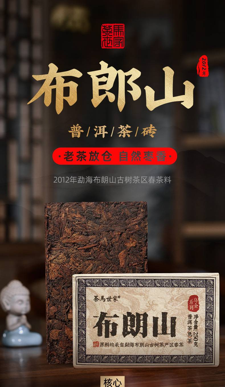 茶马世家布朗山12年陈料云南勐海普洱茶砖古树老茶砖陈香茶叶