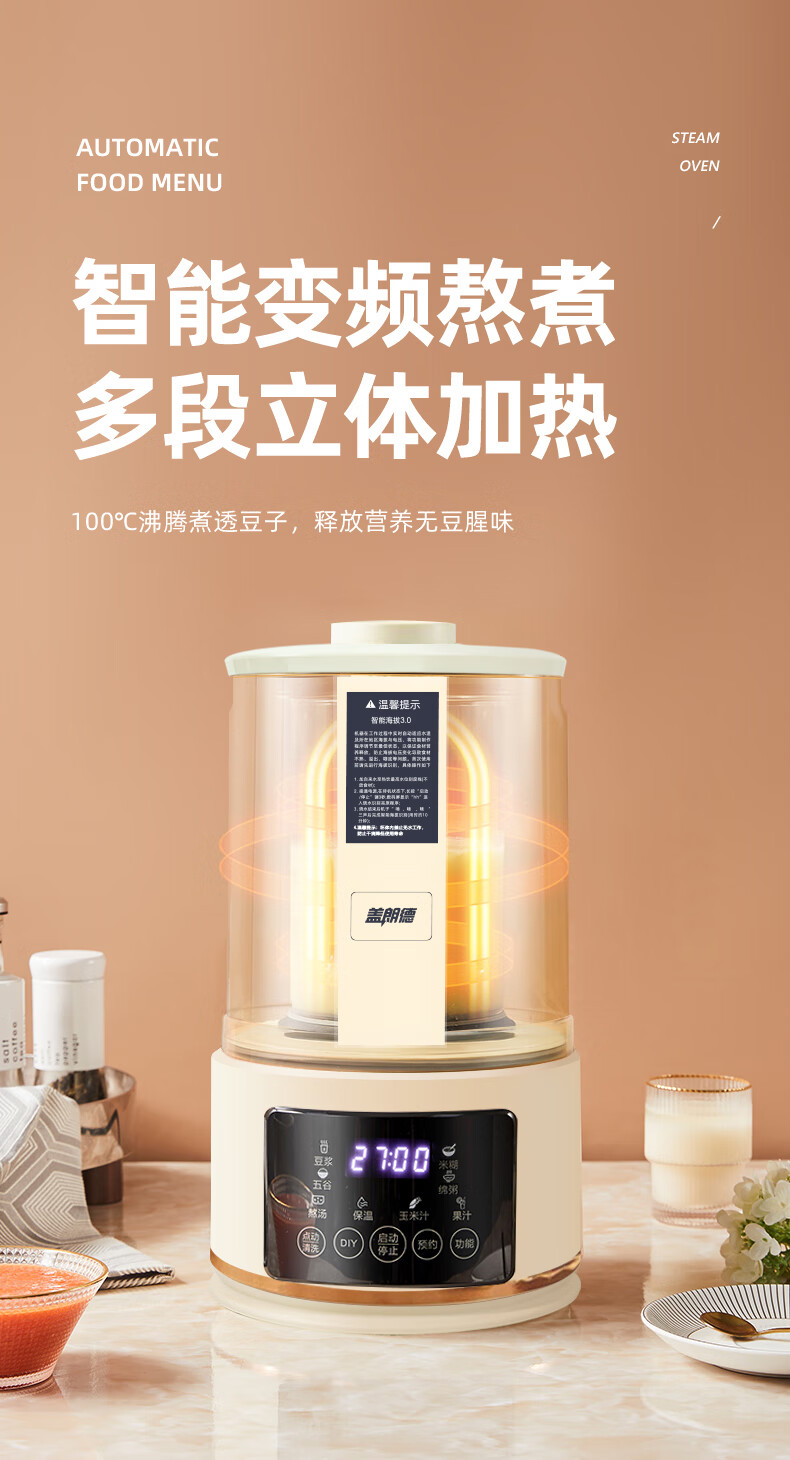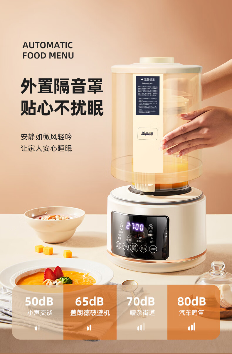 盖朗德轻音破壁机 家用豆浆机加热全自动带隔音罩榨汁机搅拌机辅食机料理机降噪低音 GZ-PBJ705