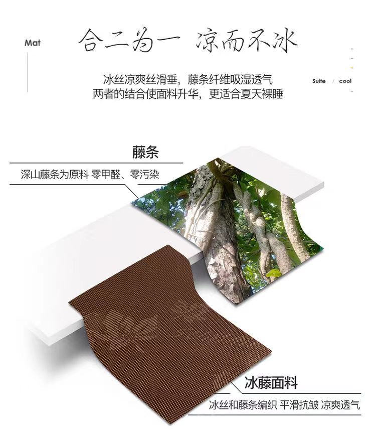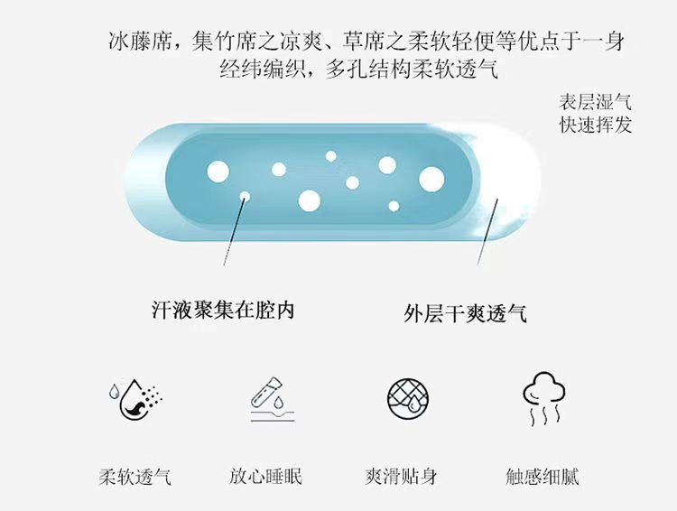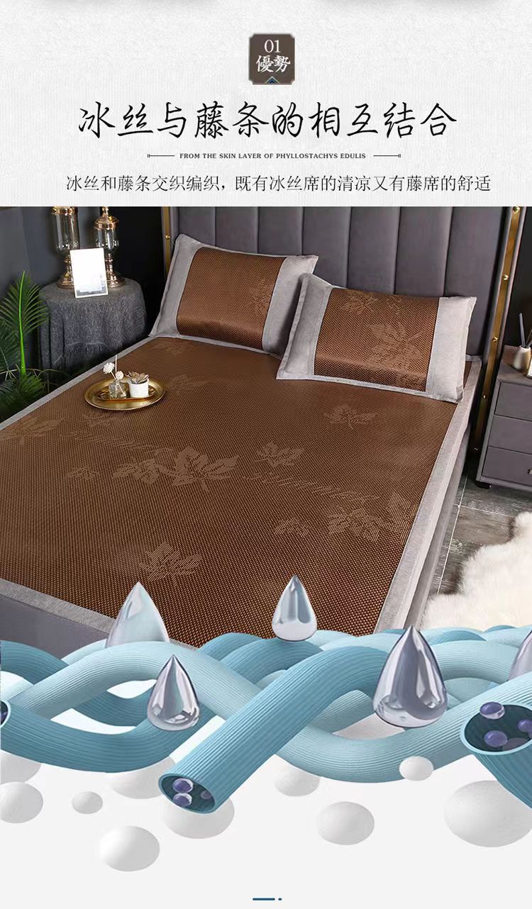 【皮尔卡丹】冰藤席 凉而不冰 柔软光滑易擦洗 1.8米 双人夏凉席空调席子可折叠凉席 180*200cm