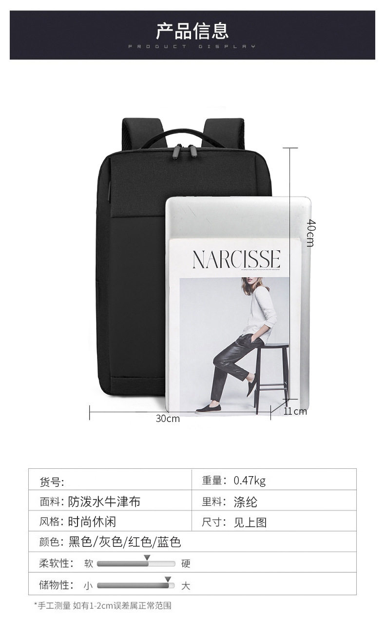 猎燕16寸新款电脑包USB大容量双肩背包商务旅行通勤双肩包学生书包A05