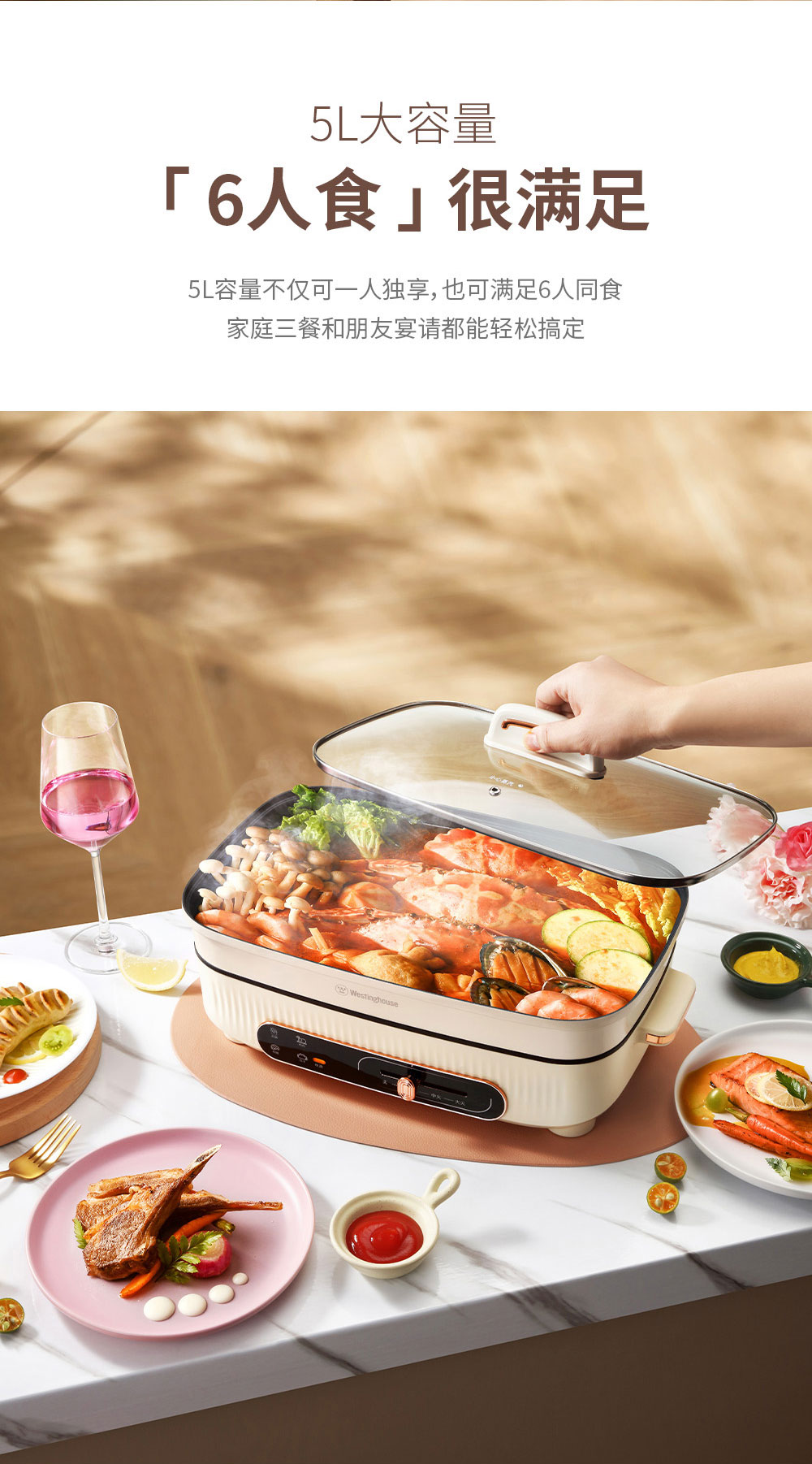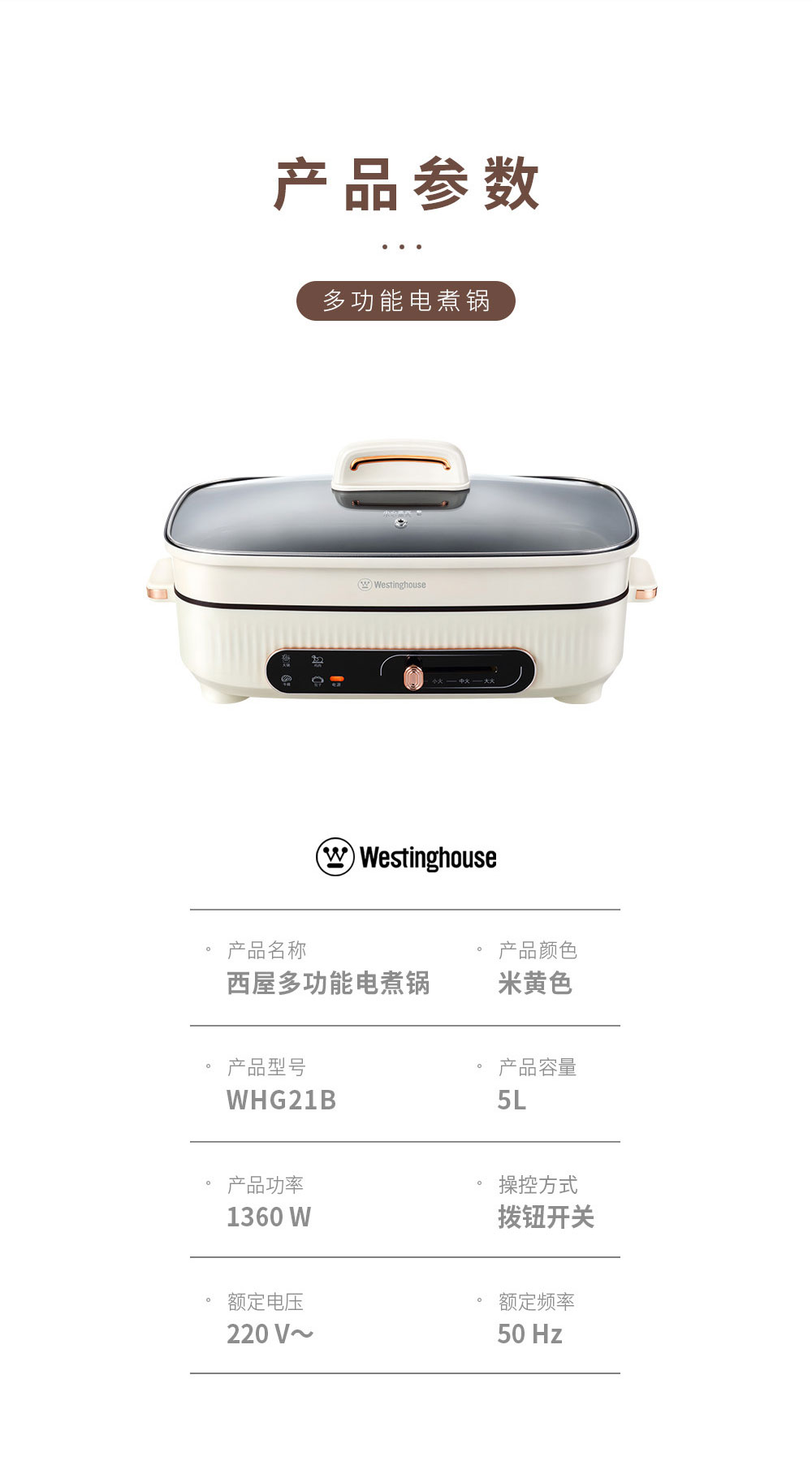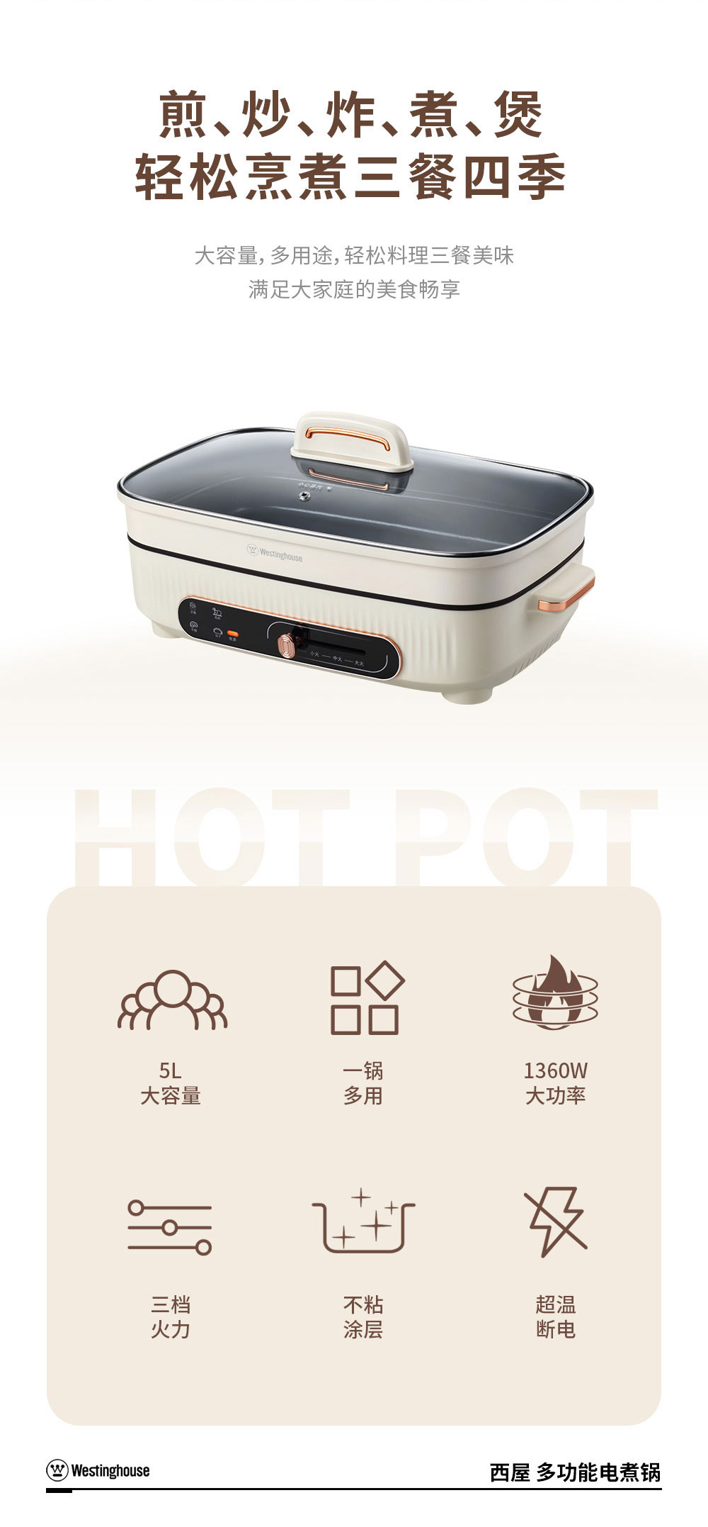 【西屋】多功能电煮锅 普区包邮 容量大一锅多用 高温速热WHG21B
