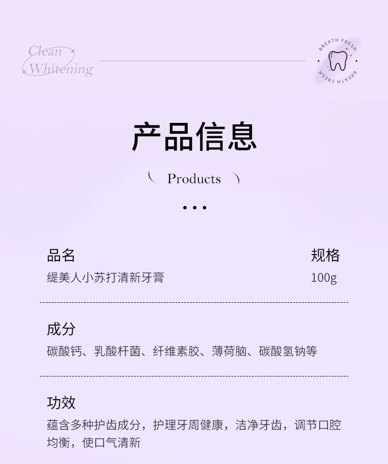 缇美人小苏打牙膏 清新品气焕白口腔护理无氟护龈去渍牙膏 小苏打清新牙膏*5支