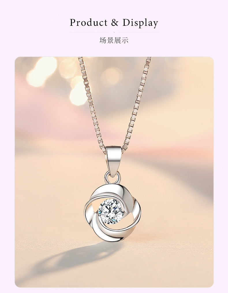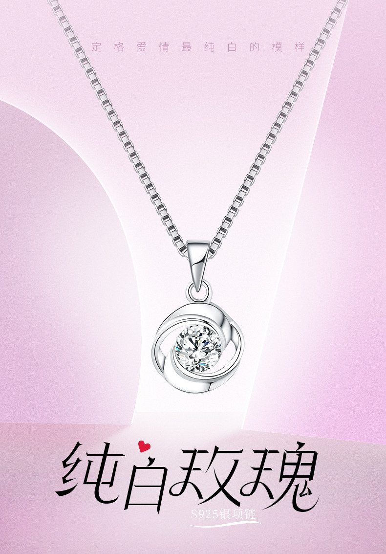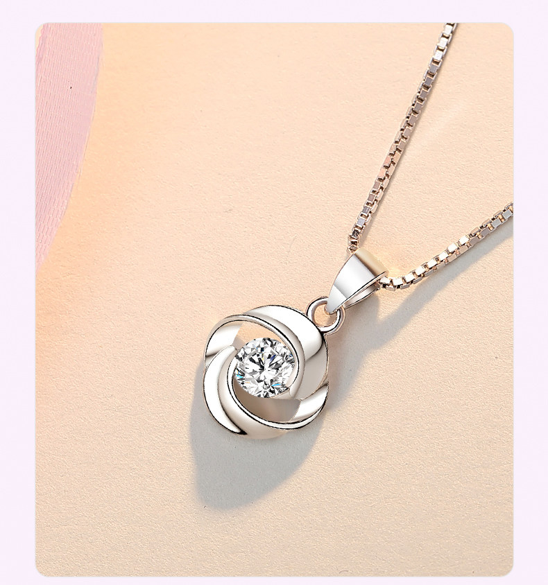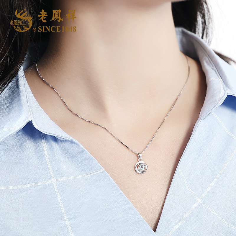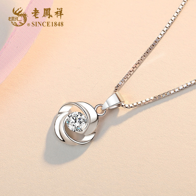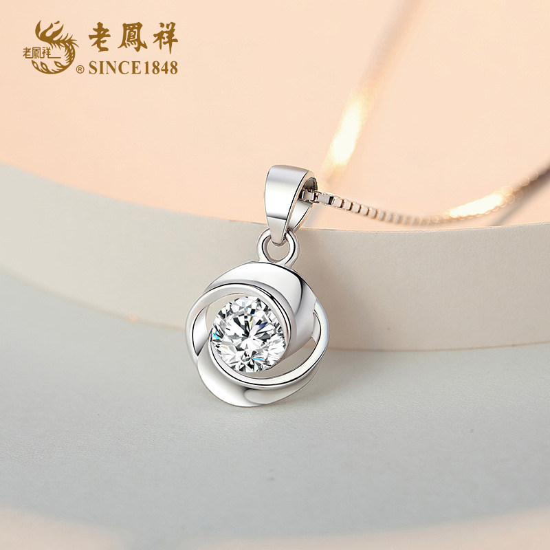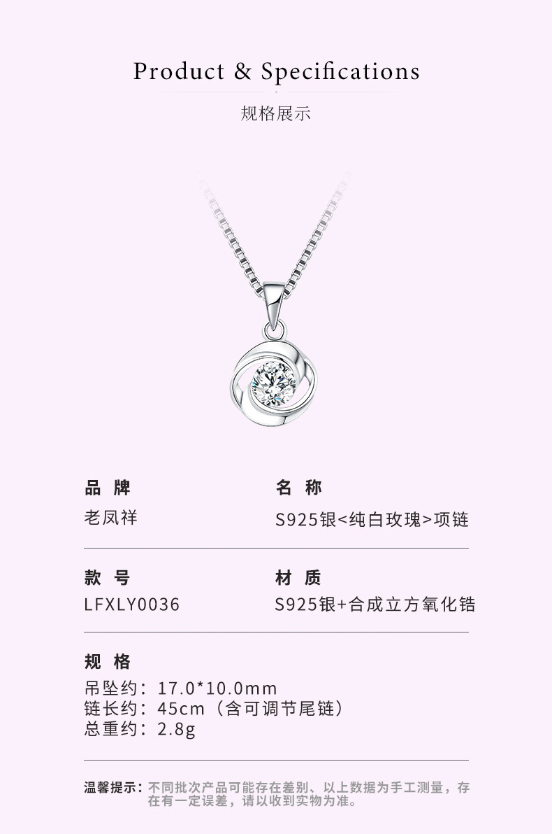 老凤祥S925银纯白玫瑰项链韩版经典轻奢小众锆石吊坠锁骨链LFXLY0036