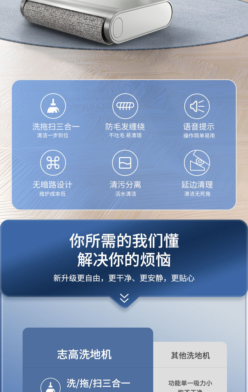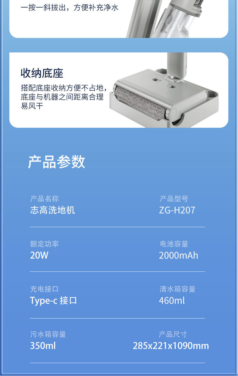 志高洗地机家用洗拖扫三合一智能语音自清洁电动拖把(新款)ZG-H207