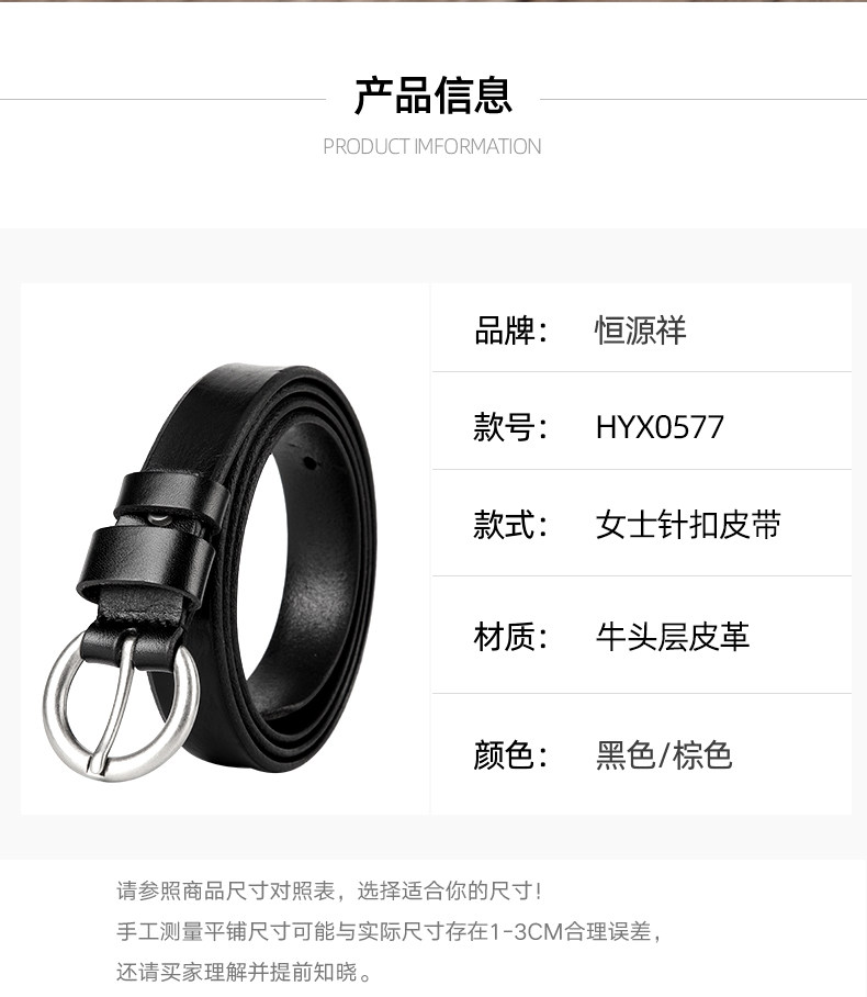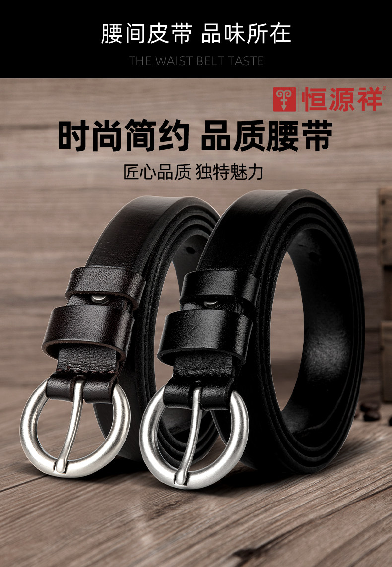 恒源祥(HYX)女士针扣真皮带高颜值百搭收腰腰带时尚休闲潮流裤带HYX0577 黑色
