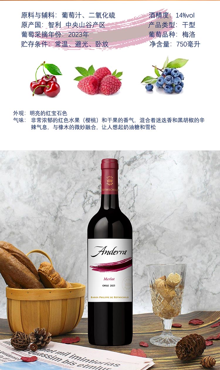 菲利普罗思柴尔德男爵 峰园梅洛红葡萄酒 木桐庄园 智利原瓶原装进口 14度干红葡萄酒 750ML/瓶单瓶装