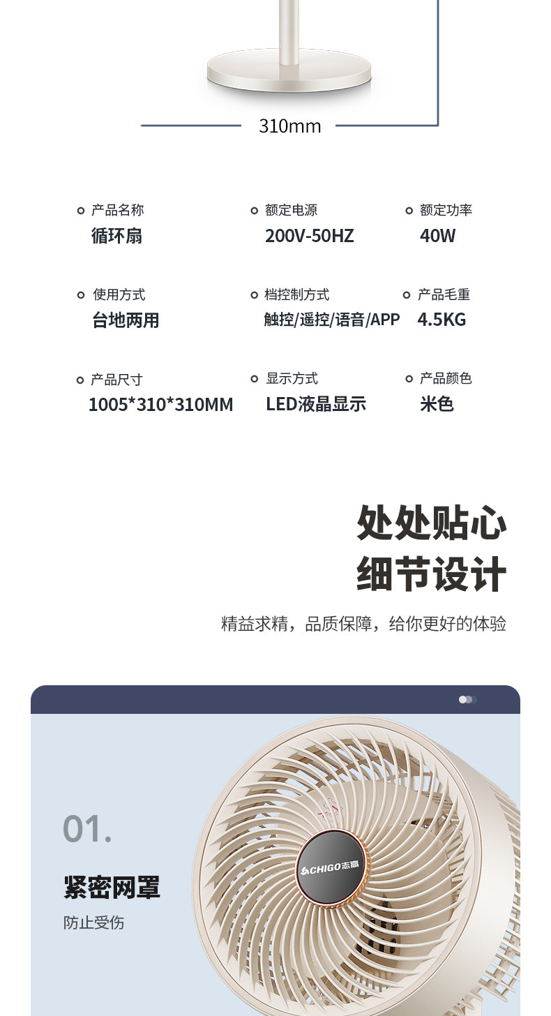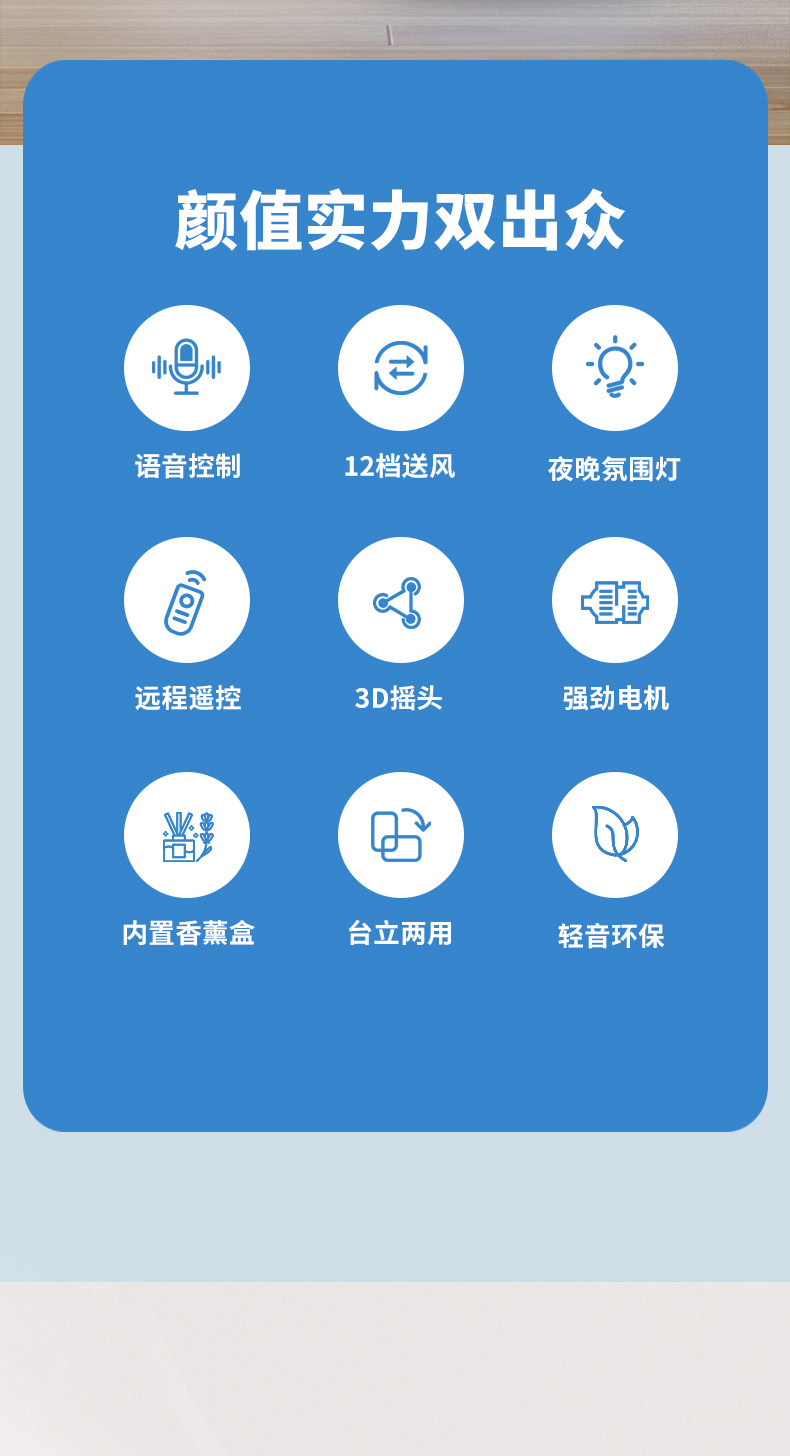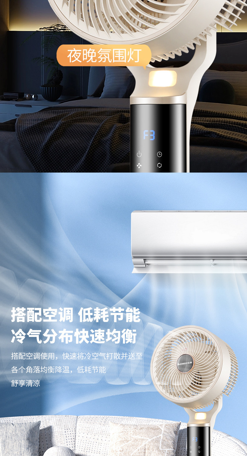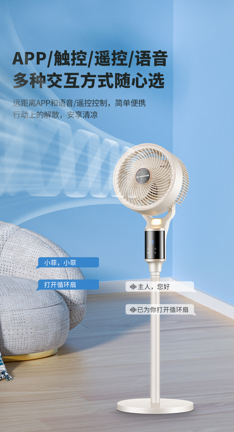 志高空气循环扇家用落地扇轻音大风力立式电风扇智能语音款HL241R
