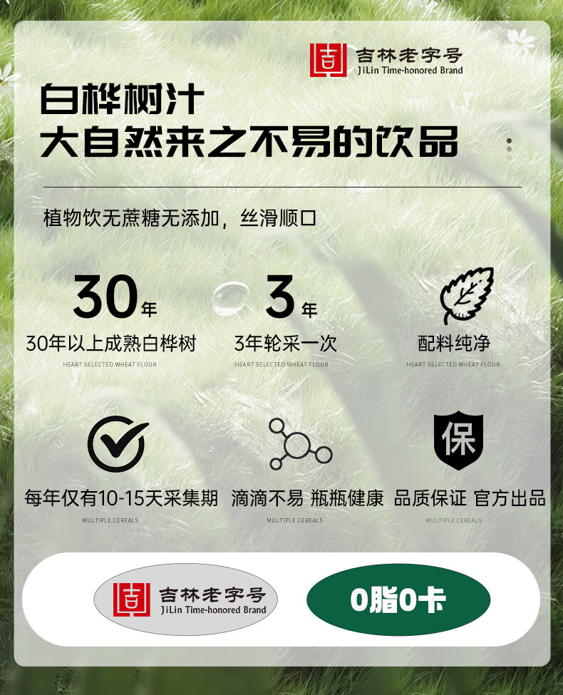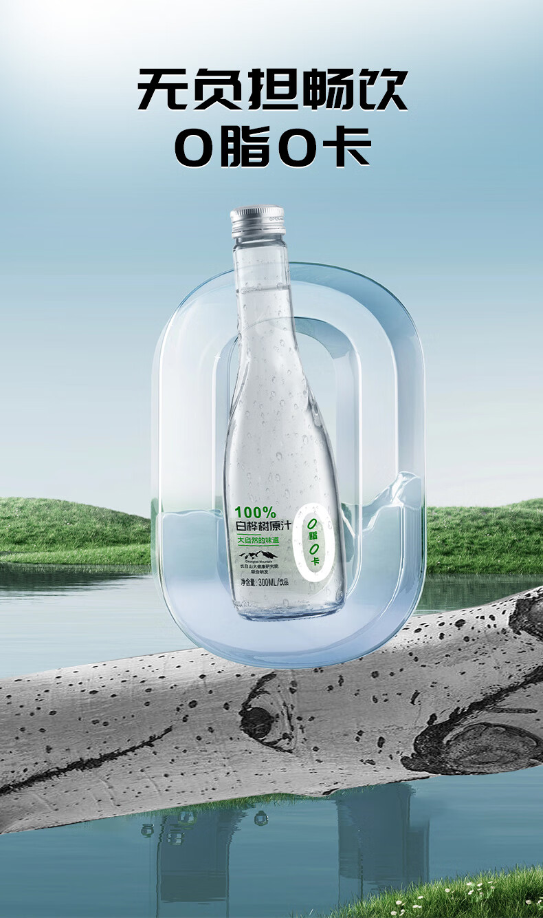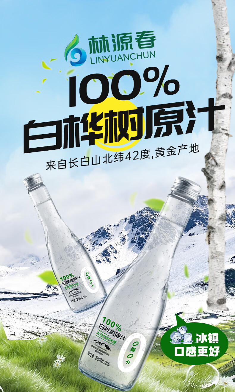 林源春白桦树汁100%天然饮品饮料白桦树原汁长白山白桦树原液300ml*9瓶/箱 偏远地区不包邮