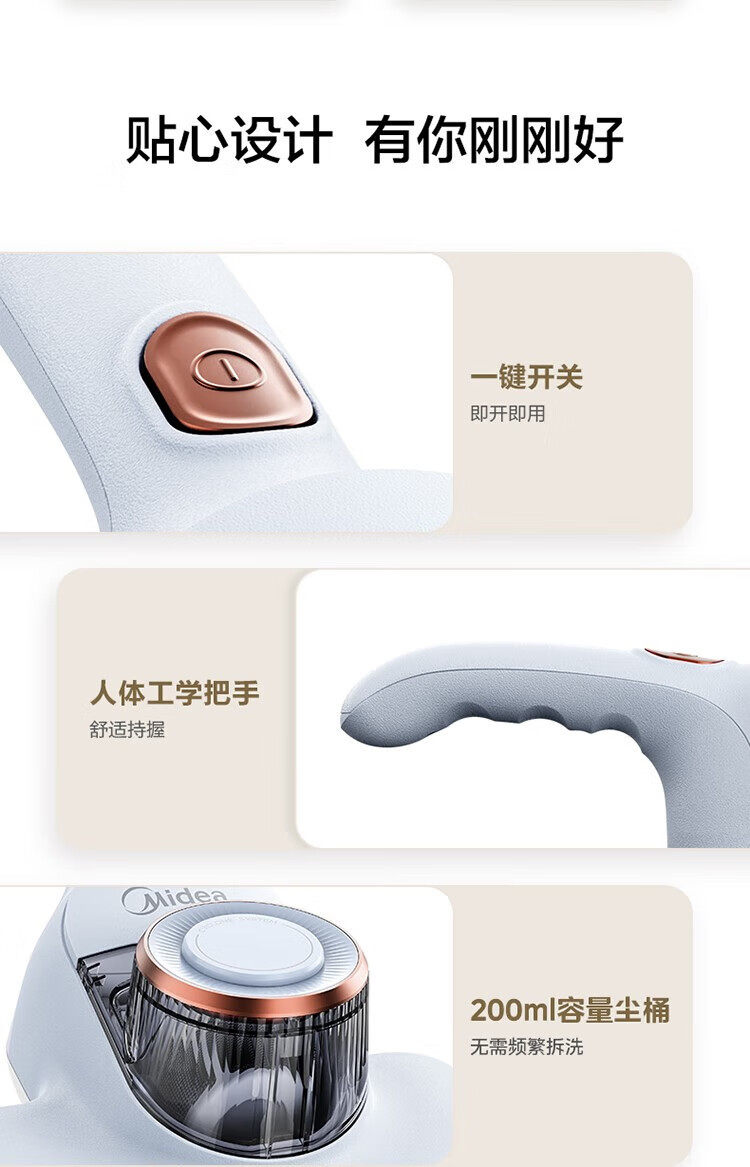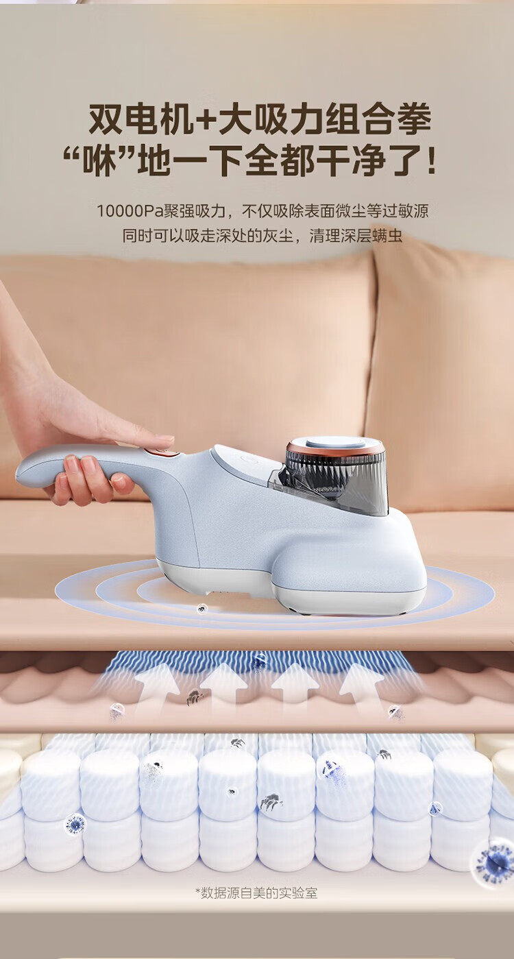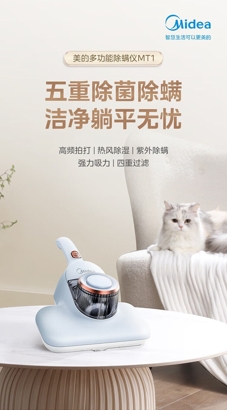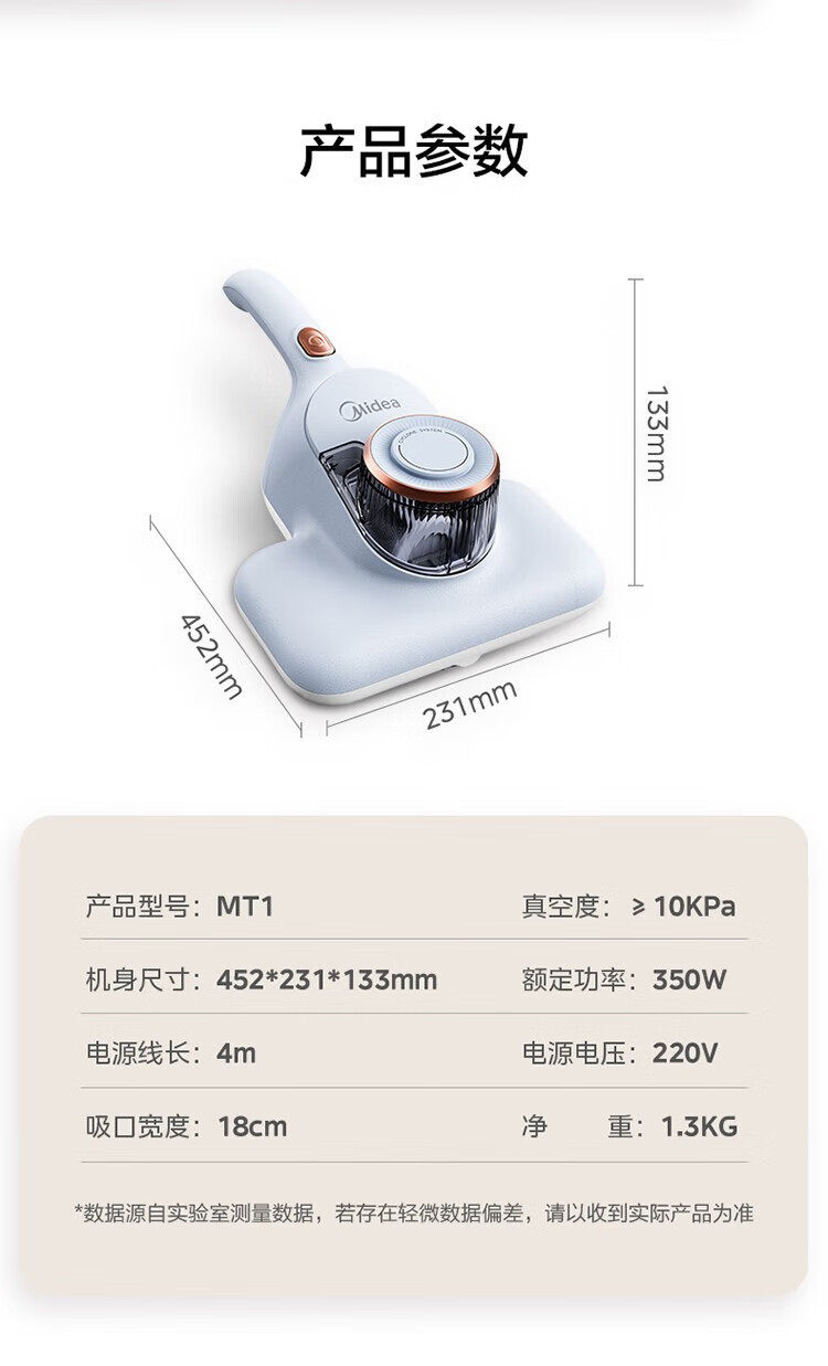 美的除螨仪家用手持床上紫外线杀菌双重除螨除湿多功能手持吸尘器MT1