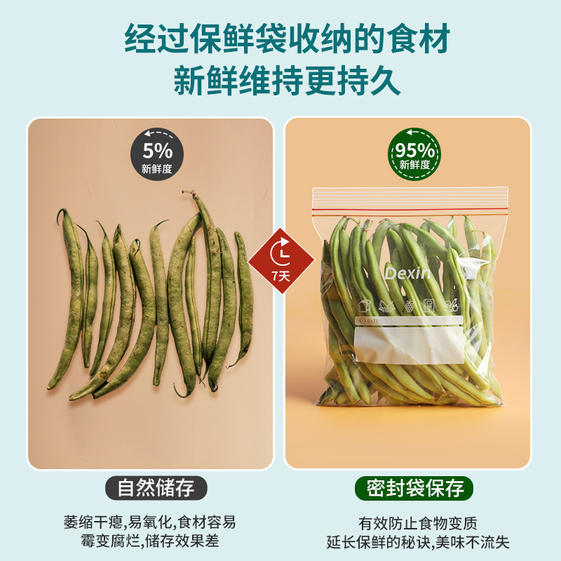 德昕双筋密封保鲜袋食品级厨房冰箱专用防串味家用收纳分装袋DX001