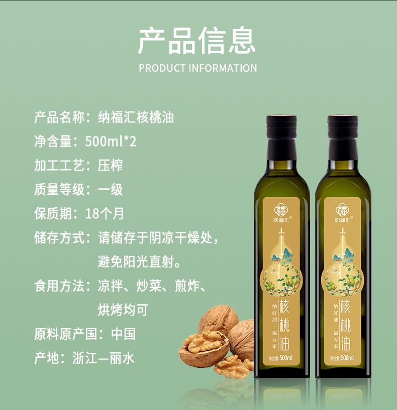 【2瓶礼盒装】纳福汇核桃油礼盒500ml*2