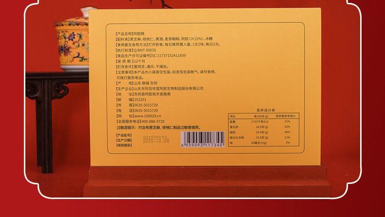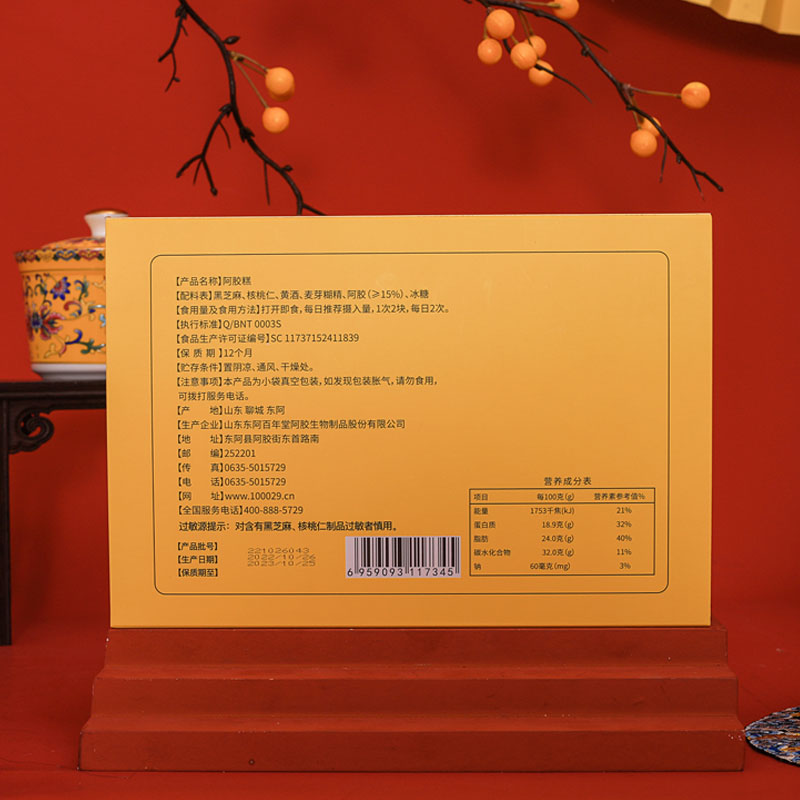 百年堂阿胶糕15%阿胶含量【简装帝王黄色】200g/盒