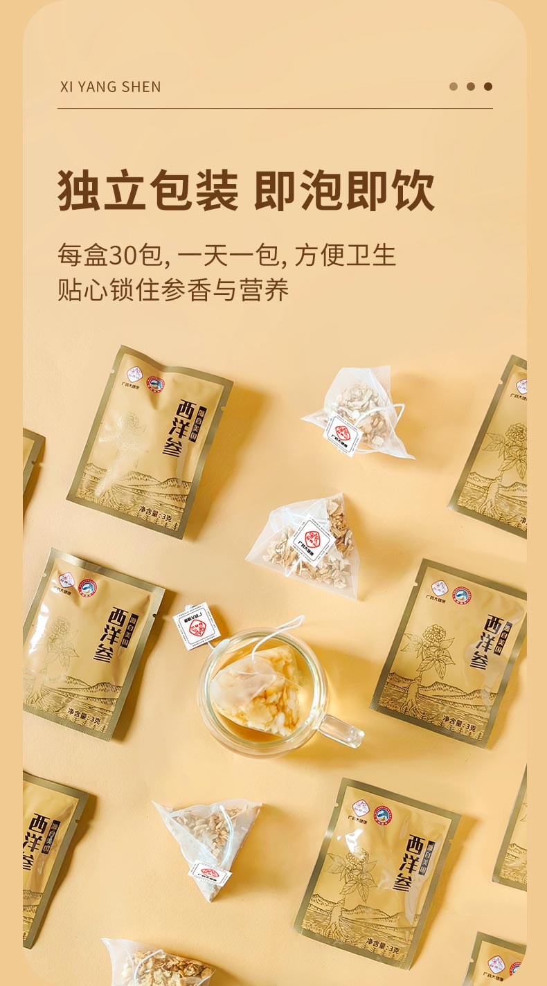 食尚知补 白云山广药大健康西洋参袋泡茶 西洋参袋泡茶划算装90g(初级农产品)