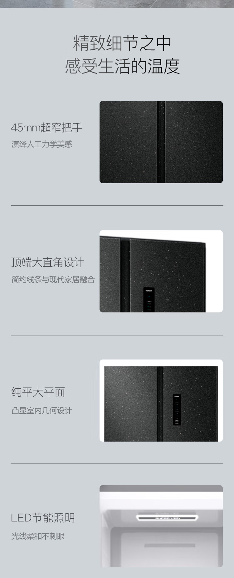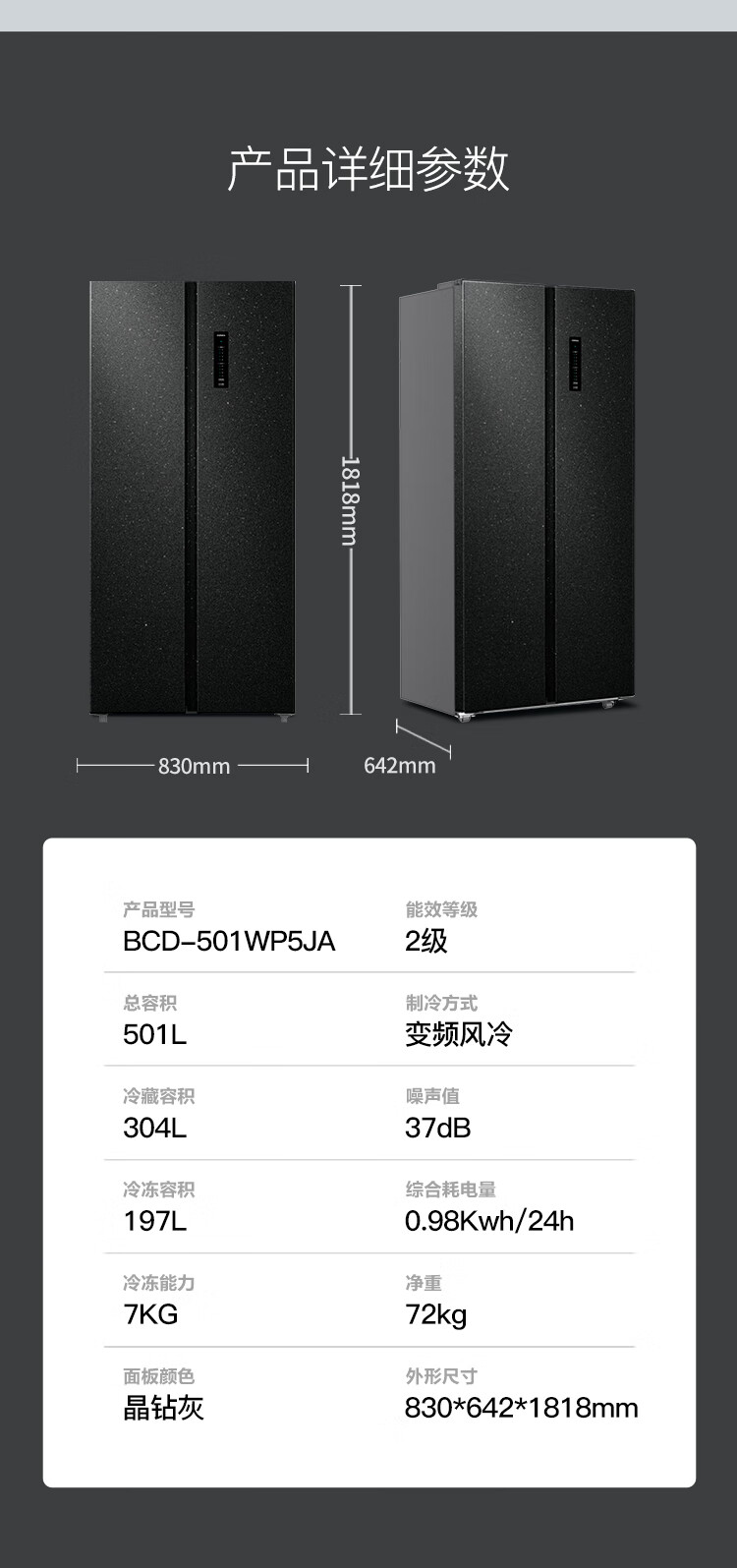 康佳冰箱 急速净味 除菌更健康 纤薄大容量对开门冰箱 黑色BCD-501WP5JA