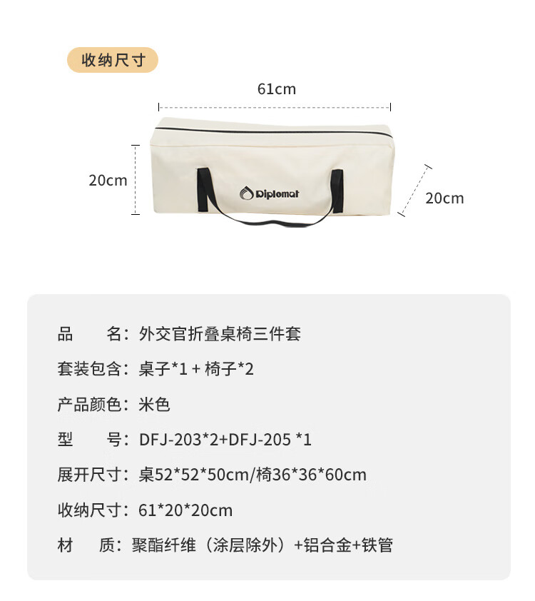【外交官】户外折叠桌椅三件套套装 轻松折叠便捷收纳袋DFJ-203*2+DFJ-205