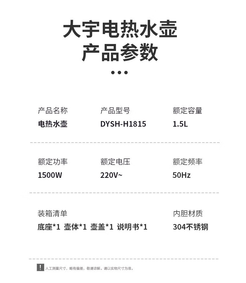 大宇/DAEWOO 电热水壶1.5L大容量家用双层防烫烧水壶DYSH-H1815