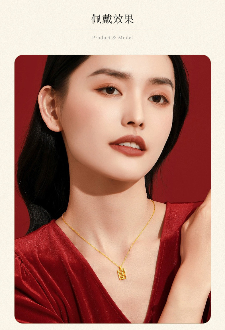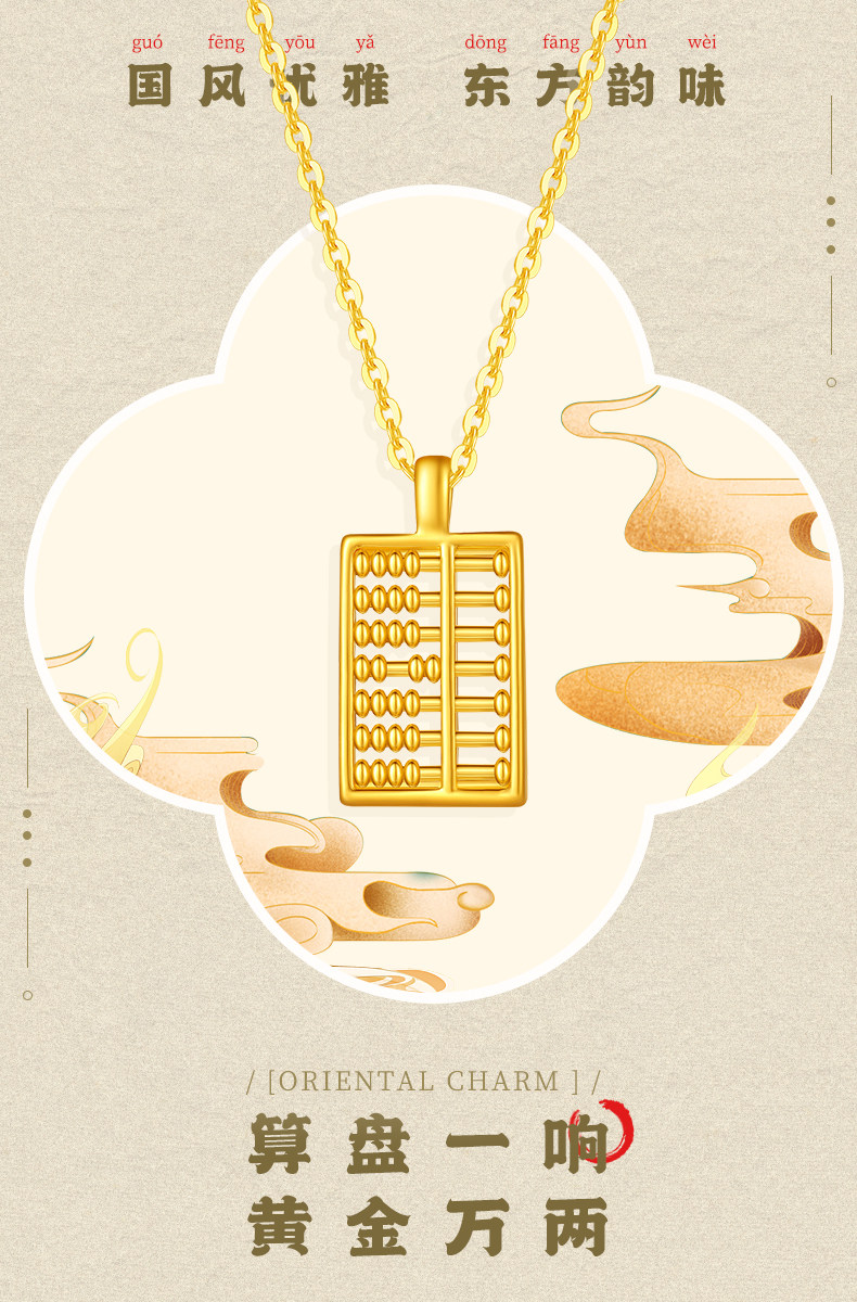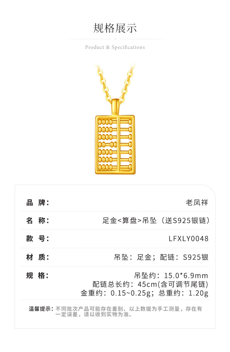 老凤祥足金算盘吊坠送S925银链时尚百搭女锁骨链送节日礼物LFXLY0048